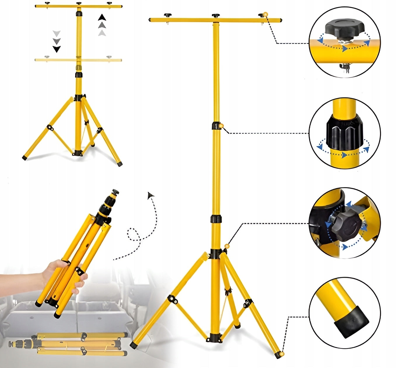 Šis LED apšvietimo stovas yra sukurtas atlaikyti įvairias darbo sąlygas. Pagamintas iš aukštos kokybės plieno ir padengtas milteliniu būdu, jis yra atsparus korozijai ir drėgmei, todėl yra visiškai atsparus vandeniui ir puikiai tinka naudoti lauke. Ryški geltona spalva ne tik suteikia jam modernią išvaizdą, bet ir gerokai padidina matomumą statybvietėje ar dirbant tamsiu paros metu, taip užtikrinant papildomą saugumą. Jo tvirta konstrukcija ir stabilumas leidžia jam atlaikyti net ir intensyvų naudojimą.