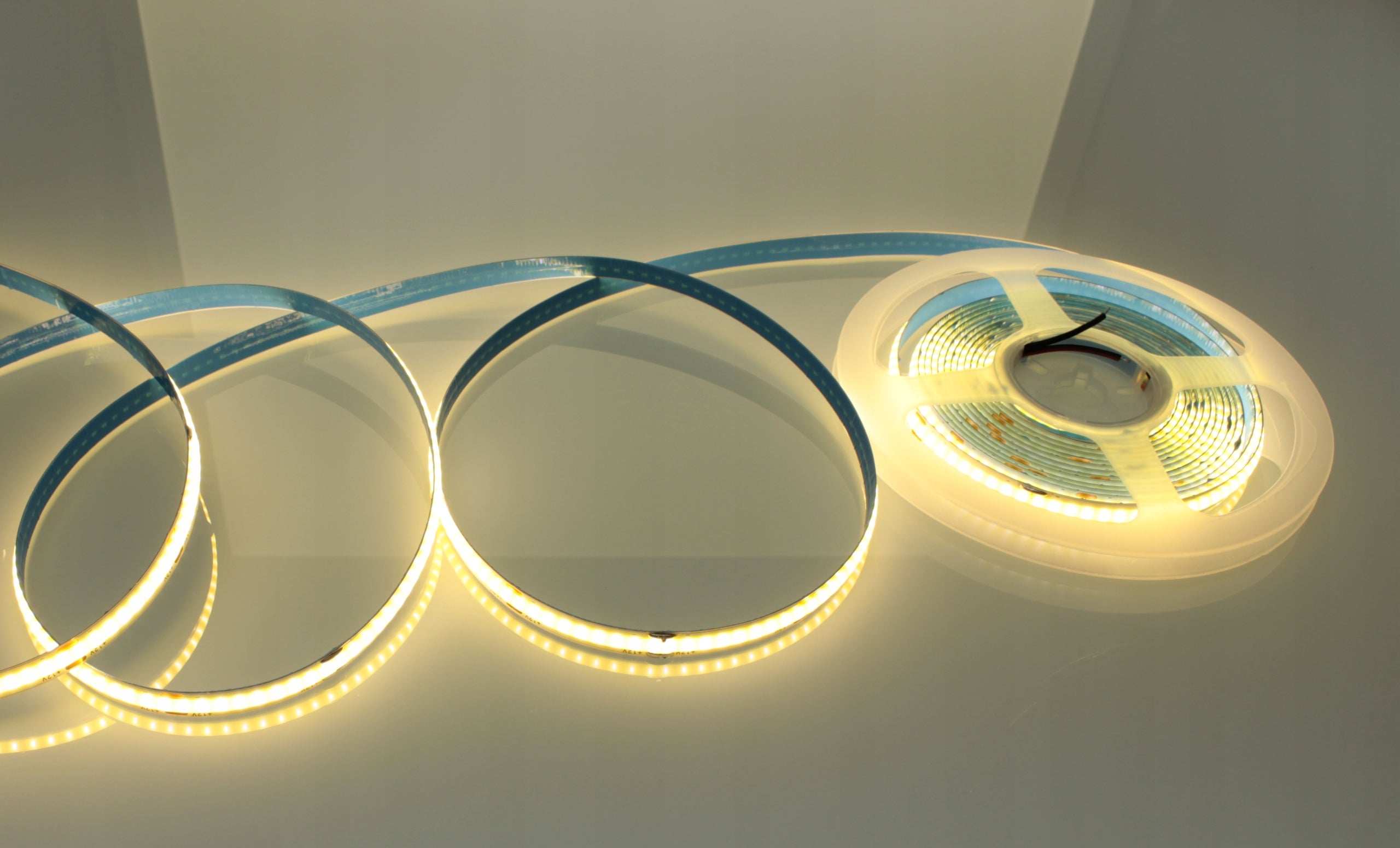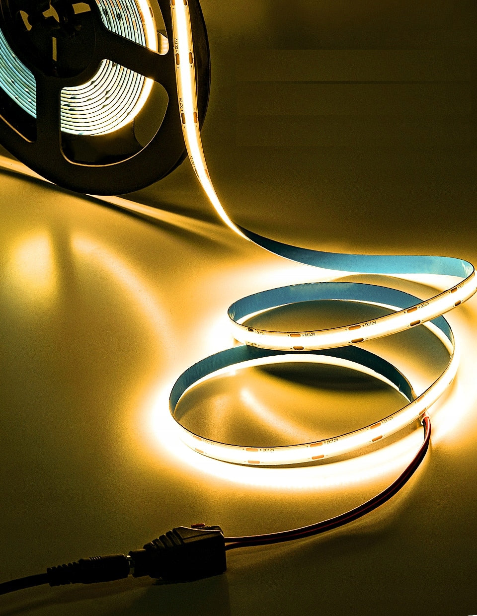 COB (Chip-on-Board) technologija ženkliai skiriasi nuo tradicinių LED juostų. Vietoj atskirų LED mikroschemų, ant pagrindo išdėliotų su tarpais, COB technologija naudoja daugybę mažyčių LED lustų, kurie sumontuoti labai arti vienas kito ant bendro pagrindo. Tai leidžia pasiekti visiškai vientisą, lygų ir nenutrūkstamą šviesos srautą, panašų į neoninius vamzdžius, tačiau su visais LED privalumais: ilgaamžiškumu, mažomis energijos sąnaudomis ir dideliu ryškumu. Ši 12W/m galios juosta naudoja apie 9W energijos metrui, tačiau savo šviesos intensyvumu prilygsta maždaug 65W tradicinei kaitrinei lemputei, o bendra 5 metrų juosta suvartoja tik 45W. Tai reiškia didelę energijos ekonomiją ir mažesnes sąskaitas už elektrą. Lanksti ir plona juosta lengvai lankstosi ir gali būti formuojama pagal poreikius, suteikdama dizaineriams ir „pasidaryk pats“ entuziastams neribotas kūrybines galimybes. Ji ne tik funkcionali, bet ir estetiška, suteikianti interjerui subtilumo.