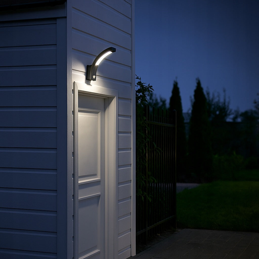 LED lauko sieninis šviestuvas 10W su judesio sensoriumi, atsparus vandeniui, sodui ir fasadui
