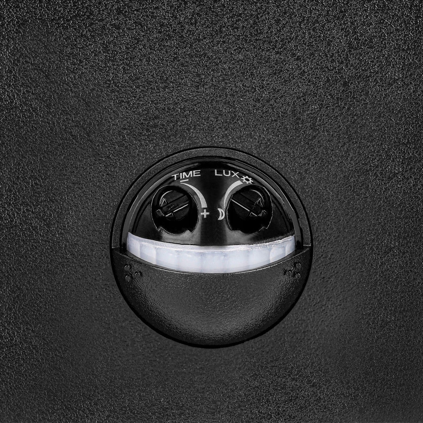 Šviestuvas pagamintas iš patvaraus metalo ir aukštos kokybės PC medžiagų, užtikrinančių atsparumą mechaniniams pažeidimams. IP54 atsparumo klasė garantuoja nepriekaištingą veikimą įvairiomis oro sąlygomis – lietus, dulkės ar vėjas nesutrukdys naudoti šviestuvo visus metus. Judesio jutiklis PIR gali aptikti judesį iki 9 m atstumu ir 140° kampu, automatiškai įjungiant šviesą, o reguliuojamos laiko ir šviesos jautrumo funkcijos leidžia tiksliai nustatyti apšvietimo sąlygas.