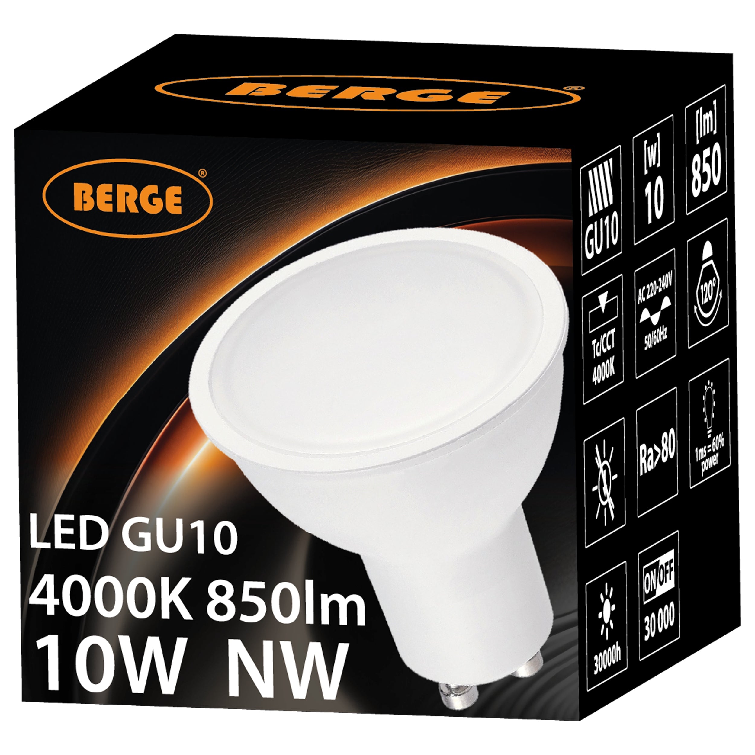 LED lemputė GU10 10W 850lm Neutrali dienos šviesa 4500K 230V 10 vnt. rinkinys
