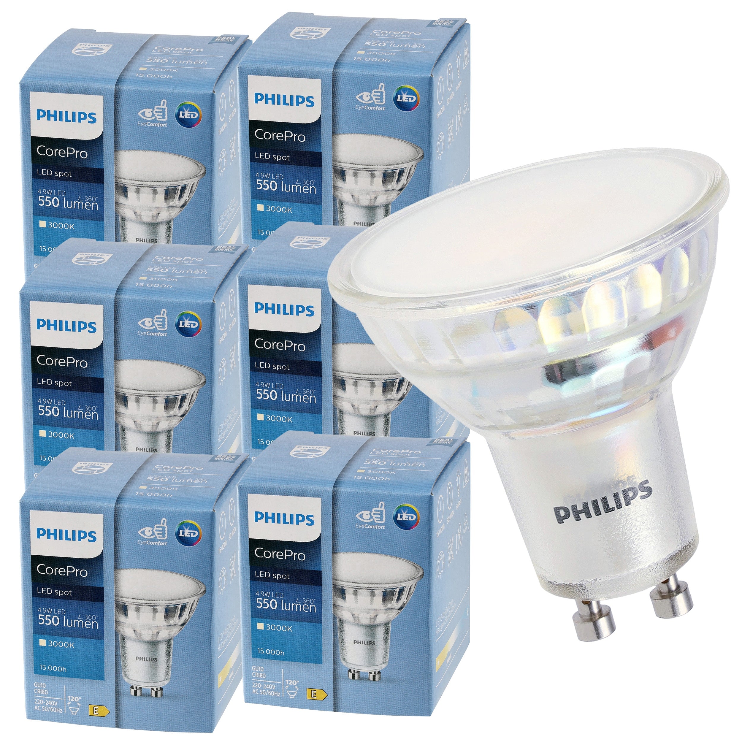 LED lemputė GU10 6 vnt. PHILIPS 4,9W 550lm Šilta spalva 3000K Premium Rinkinys