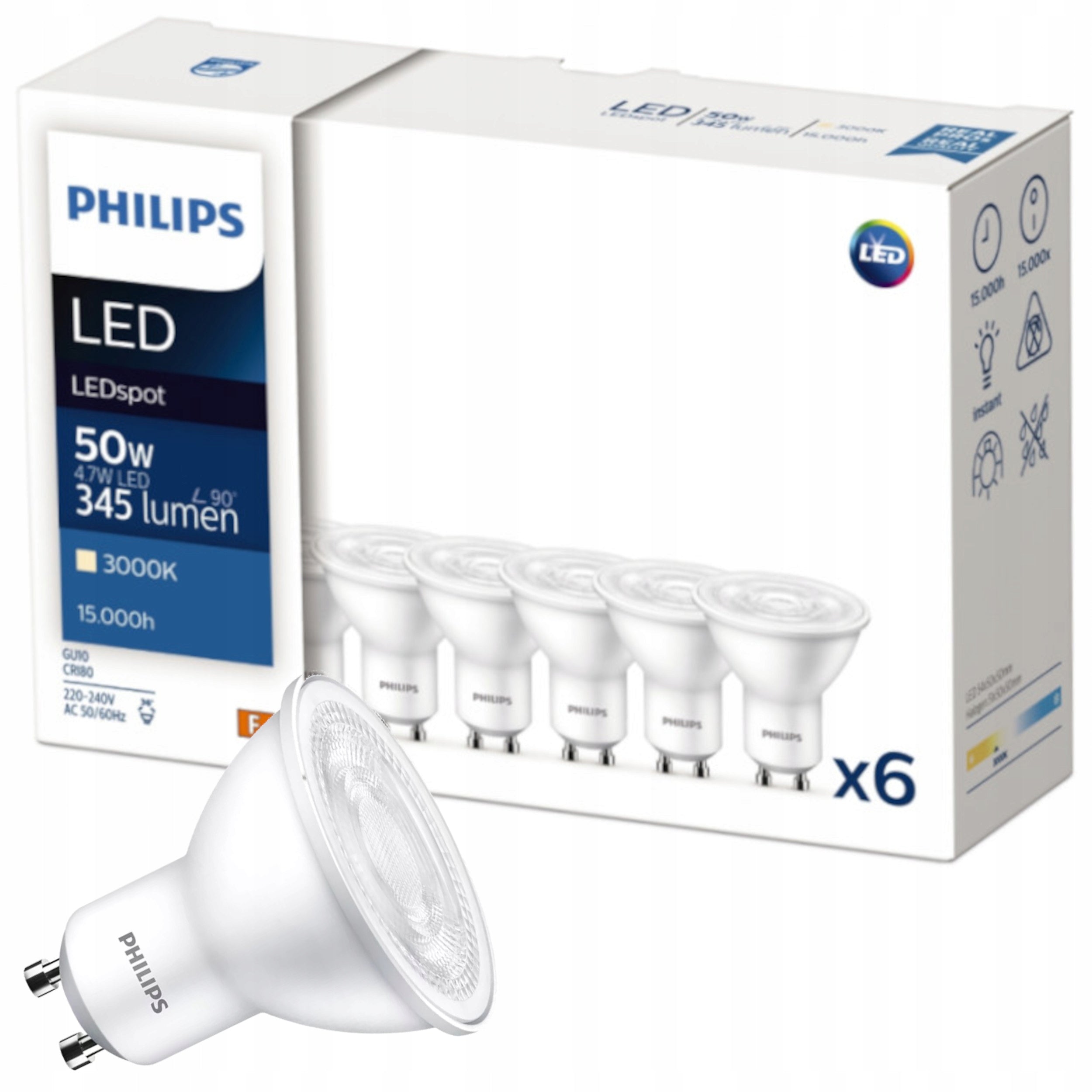 Šis pasiūlymas apima šešias (6) Philips CorePro LED GU10 lemputes. Tai leidžia lengvai ir greitai atnaujinti apšvietimą didesnėje erdvėje ar keliose skirtingose vietose vienu metu. Puikiai tinka naudoti svetainėse, virtuvėse, koridoriuose, biuruose, parduotuvėse ar parodų salėse. Jos idealiai tinka įleidžiamiems lubų šviestuvams, suteikdamos kryptingą ir akcentuojantį apšvietimą, kuris gali paryškinti interjero detales.