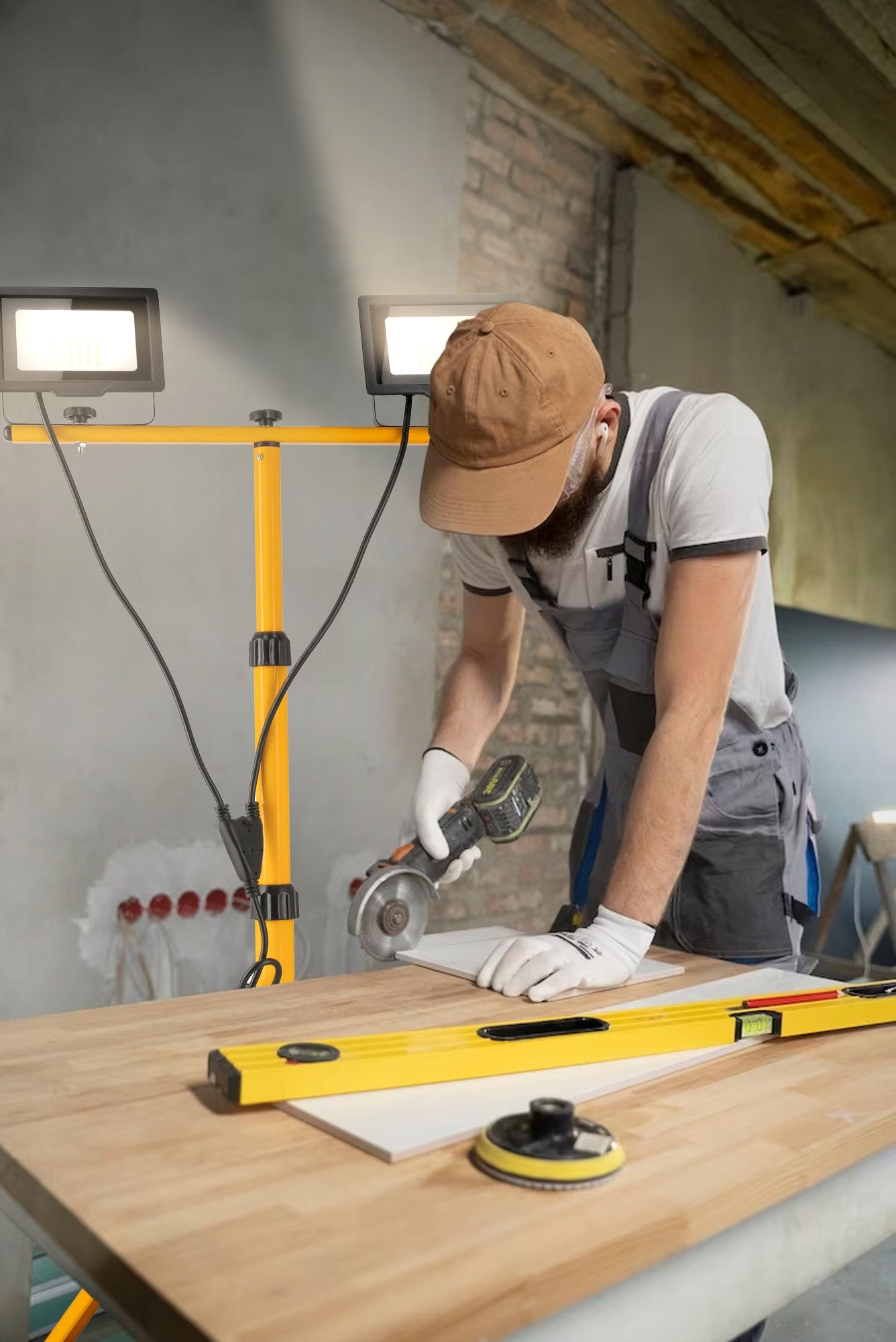 Šis LED prožektorių rinkinys su reguliuojamu statyviniu trikoju siūlo nepaprastą universalumą. Jo ypač tvirta konstrukcija ir IP65 atsparumo klasė leidžia naudoti jį įvairiausiose aplinkose – nuo dulkėtų statybviečių iki drėgnų lauko teritorijų ar pramoninių patalpų. Reguliuojamas iki 160 cm aukščio trikojis leidžia lengvai nukreipti šviesą ten, kur jos labiausiai reikia, o sulankstoma konstrukcija užtikrina patogų transportavimą ir sandėliavimą. Tai esminė priemonė kiekvienam profesionalui, dirbančiam su apdaila, remontu, gamyboje ar tiesiog dideliuose, blogai apšviestuose plotuose.