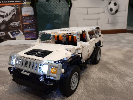 LEGO tipo konstruktorius iš CaDA gamintojo su 575 elementais leidžia surinkti nuotoliniu būdu valdomą Warrior H2 visureigį. Rinkinys turi detalią instrukciją, leidžiančią net jaunesniems konstruktoriams, padedant suaugusiam, surinkti šį įspūdingą modelį. Dvigubo režimo valdymas suteikia galimybę valdyti transporto priemonę per nuotolinį pultą arba „Bluetooth“ programėlę.