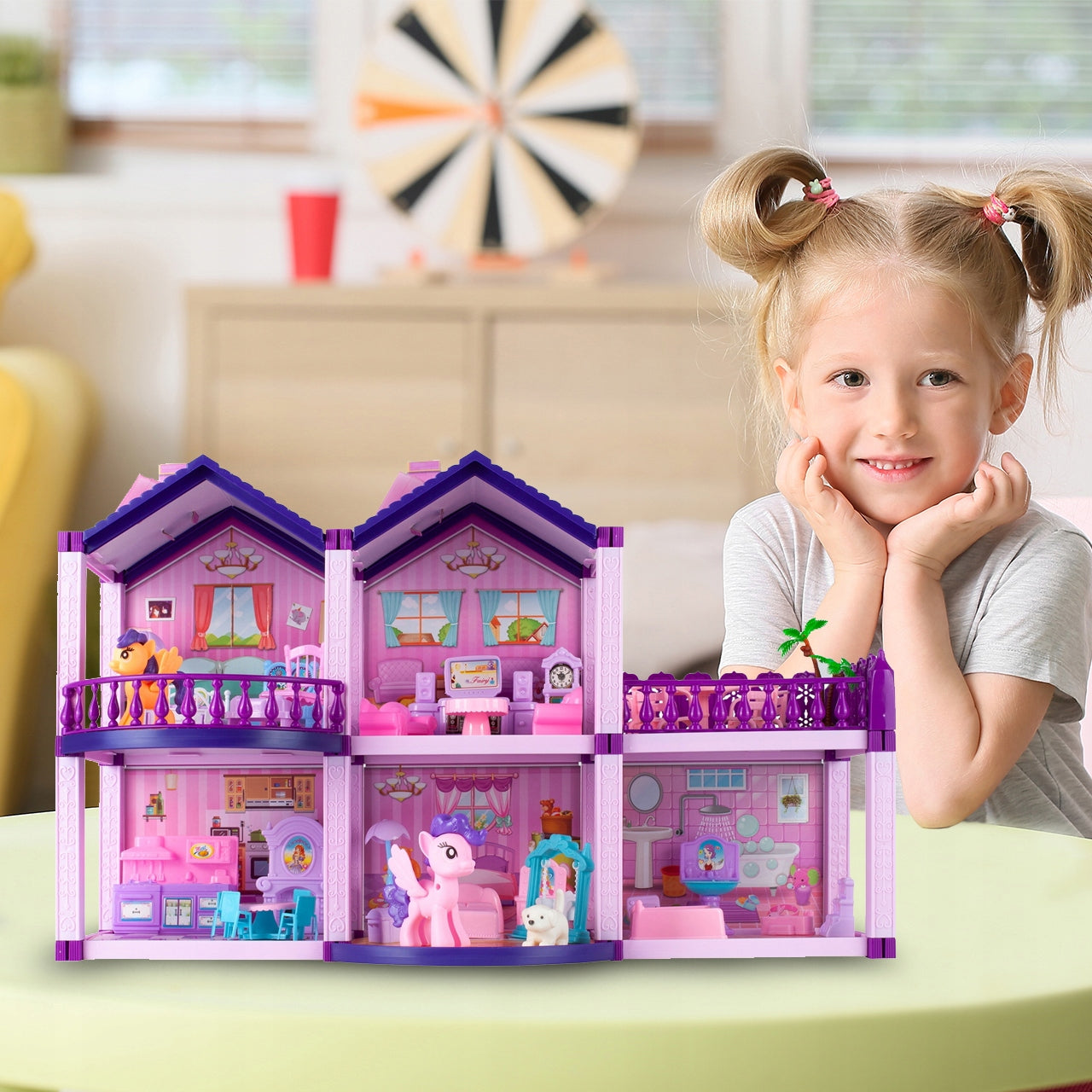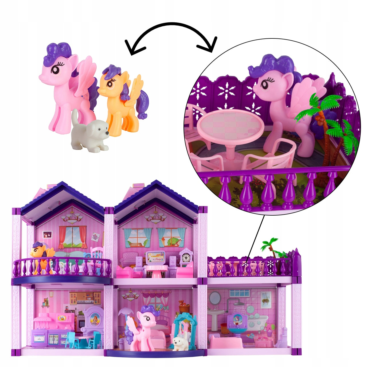 Šis žaislas skatina vaikų vaizduotę, socialinius įgūdžius ir smulkiąją motoriką. Vaikai gali vaidinti įvairius personažus, kurti dialogus, planuoti dienos veiklas kucykams ir šuniukui. Daugiafunkcionalūs kambariai, tokie kaip virtuvė su valgomojo zona, salonas, miegamieji, vonios kambarys ir netgi balkonas, suteikia begalę galimybių žaidimui. Detalus interjeras ir smulkūs baldų elementai padeda vaikams geriau suprasti namų aplinką ir skirtingas buities situacijas. Tai puiki platforma mokytis per žaidimą, ugdyti atsakomybę ir empatiją.