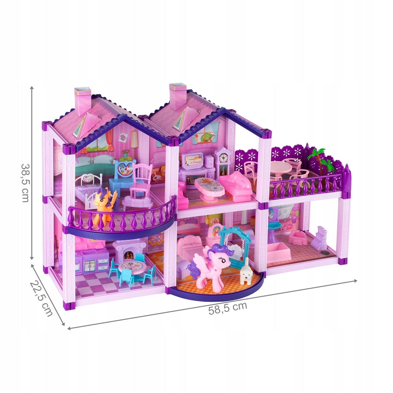 Šis nuostabus, rožinės spalvos lėlių namelis - tikra svajonė kiekvienai mergaitei ir puiki dovana, sukurianti begalę džiugių akimirkų. Sukurtas atsižvelgiant į vaikų saugumą ir detales, šis namelis idealiai tinka žaisti su kucykais, šuniukais ar kitomis mėgstamomis lėlytėmis. Jame jaukiai įsikurs ne tik komplekte esantys personažai, bet ir kitos mažosios figūrėlės, leidžiančios vaikams kurti nesibaigiančias istorijas ir pasinerti į fantazijų pasaulį. Dviaukštė vila pasižymi ryškiomis spalvomis, kurios skatina vaikų vaizduotę ir norą tyrinėti kiekvieną jos kampelį.