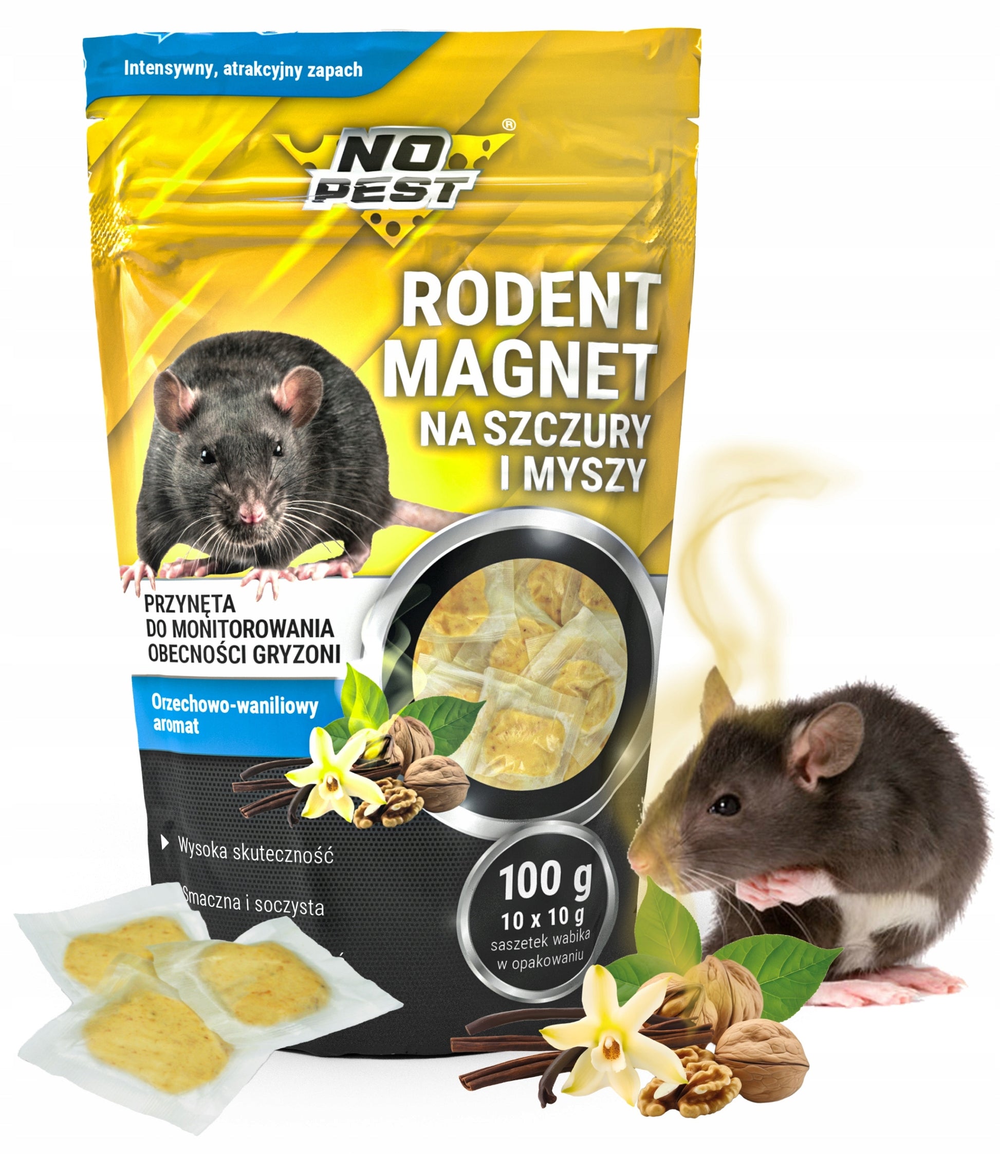 Specialiai sukurtas masalas No Pest® (100 g) yra intensyvaus riešutų ir vanilės aromato, papildytas skonio stiprikliais, todėl jis itin patrauklus pelėms ir žiurkėms. Šis masalas neišdžiūsta ir išlaiko savo efektyvumą ilgą laiką, todėl puikiai tinka naudoti kartu su lipniais spąstais, pelėkautais ar kitomis gaudyklėmis. Jo skanumas ir stiprus kvapas garantuoja greitesnį ir veiksmingesnį graužikų priviliojimą prie spąstų. Tai netoksiška, saugi žmonėms ir lengvai naudojama priemonė.