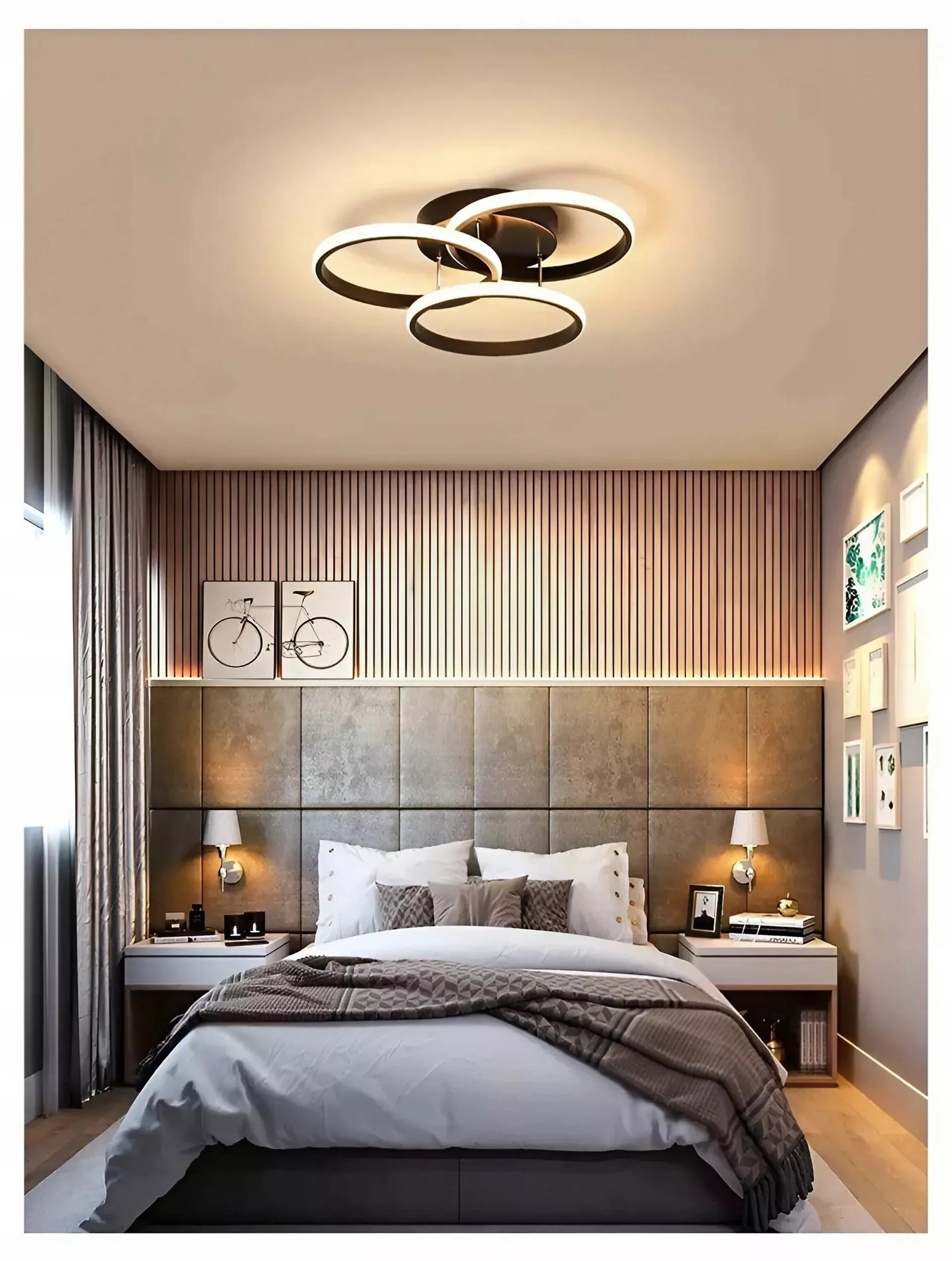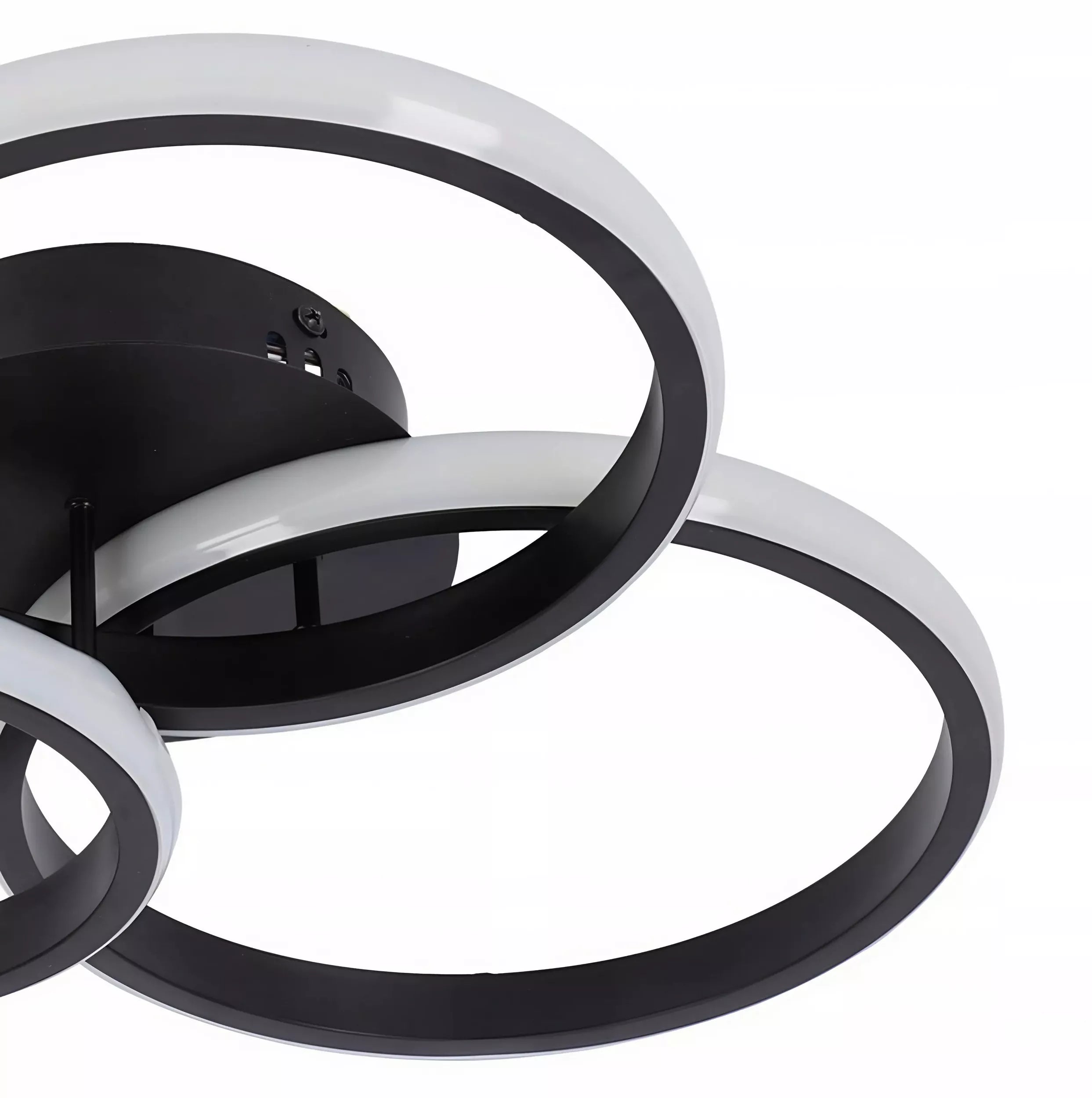 Atnaujinkite savo namų interjerą su šiuo išskirtiniu, moderniu lubiniu šviestuvu. Jo unikalus dizainas su trimis elegantiškais LED žiedais suteiks Jūsų erdvei rafinuotumo ir stiliaus. Tai ne tik apšvietimo šaltinis, bet ir svarbus dekoro elementas, derantis tiek prie minimalistinių, tiek prie elegantiškų interjero sprendimų. Šviestuvas pasižymi aukštos kokybės medžiagomis ir ilgaamžiškumu, garantuojančiu ilgalaikį naudojimą. Jo juoda spalva ir moderni forma lengvai dera prie įvairių spalvų paletės.