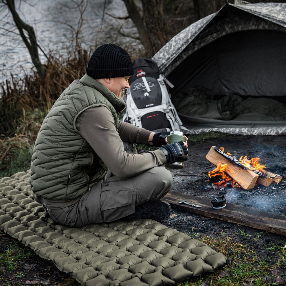M-Tac turistinis pripučiamas kilimėlis yra vienas lengviausių ir kompaktiškiausių modelių rinkoje. Dėl anatominės formos ir padidinto 5 cm storio jis užtikrina patogų miegą net ant nelygaus paviršiaus, apsaugodamas nuo smulkių akmenų, šakų ir kitų nelygumų. Kilimėlio tankis ir ląstelinė struktūra suteikia puikią šilumos izoliaciją ir amortizaciją, efektyviai blokuojant šaltį nuo žemės.