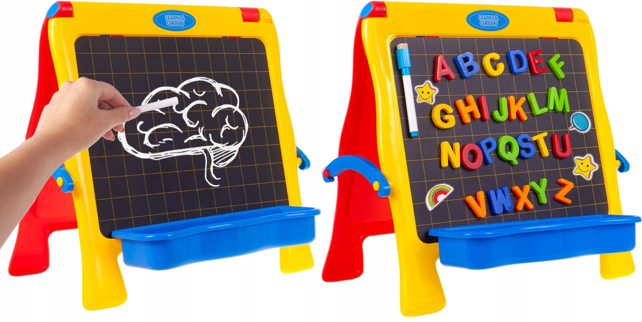 Atverkite vaikui pasaulį, kuriame mokymasis virsta smagiu žaidimu! Ši dvipusė magnetinė lenta yra ne tik puiki pramoga, bet ir nepakeičiama priemonė lavinant vaiko kūrybiškumą, vaizduotę, koncentraciją bei koordinaciją. Viena lenta – daugybė galimybių: rašykite kreidelėmis, pieškite žymekliais, konstruokite iš magnetukų – viskas priklauso nuo Jūsų mažojo menininko fantazijos. Pagaminta su apgalvotu dizainu ir saugiais, užapvalintais kraštais, ji užtikrina stabilumą ir ilgaamžiškumą, leisdama vaikams neribotai kurti ir mokytis nuo 3 metų amžiaus.