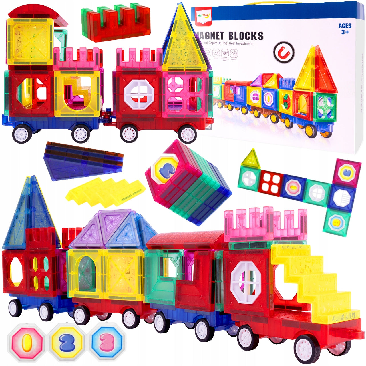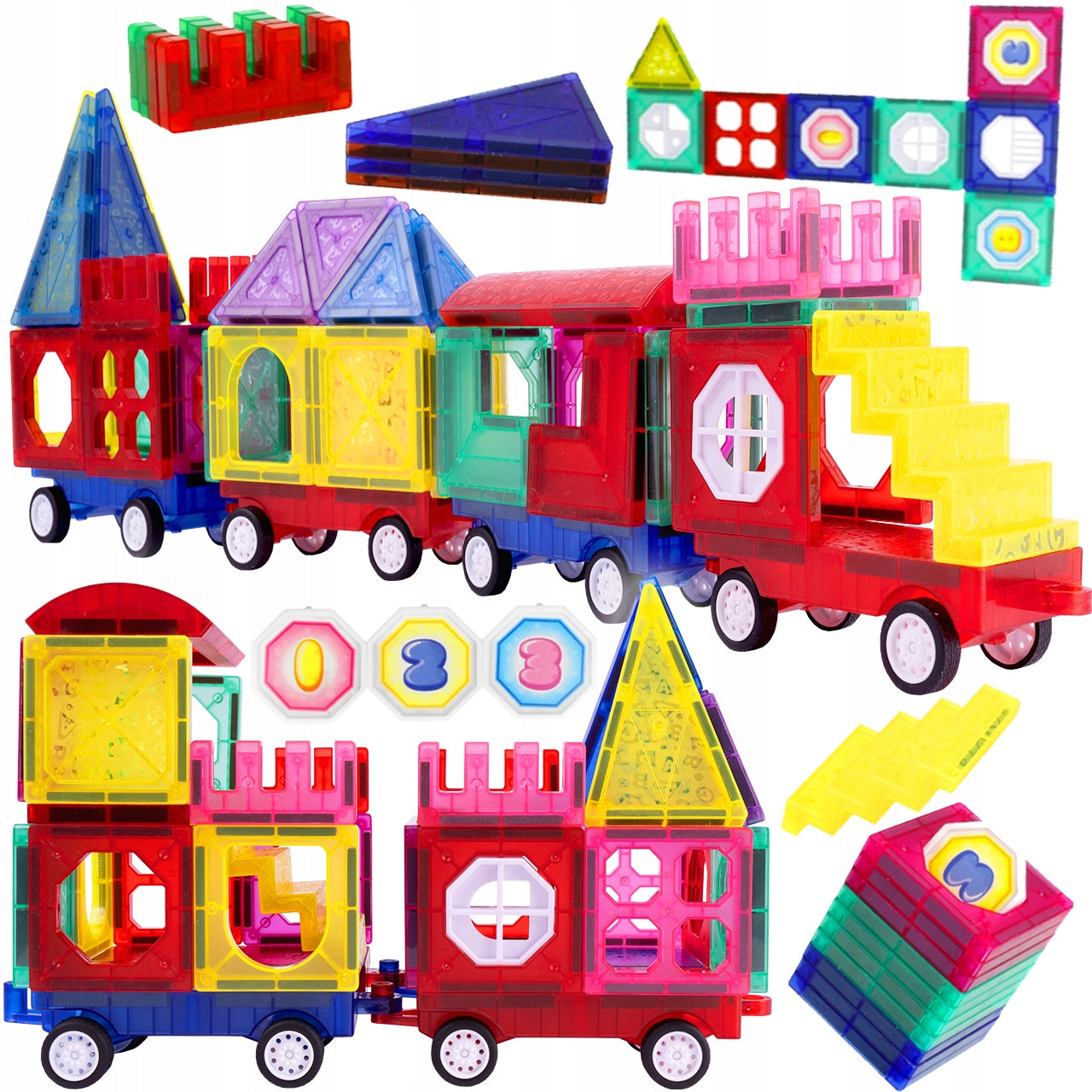 Magnetiniai konstruktorių blokeliai 3D, edukacinis traukinukas, 72 elementai