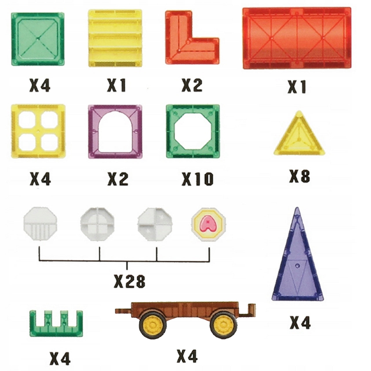Šis išsamus 72 elementų magnetinių kaladėlių rinkinys apima daugybę skirtingų formų ir dydžių detalių, kurios leis sukurti įvairias konstrukcijas.