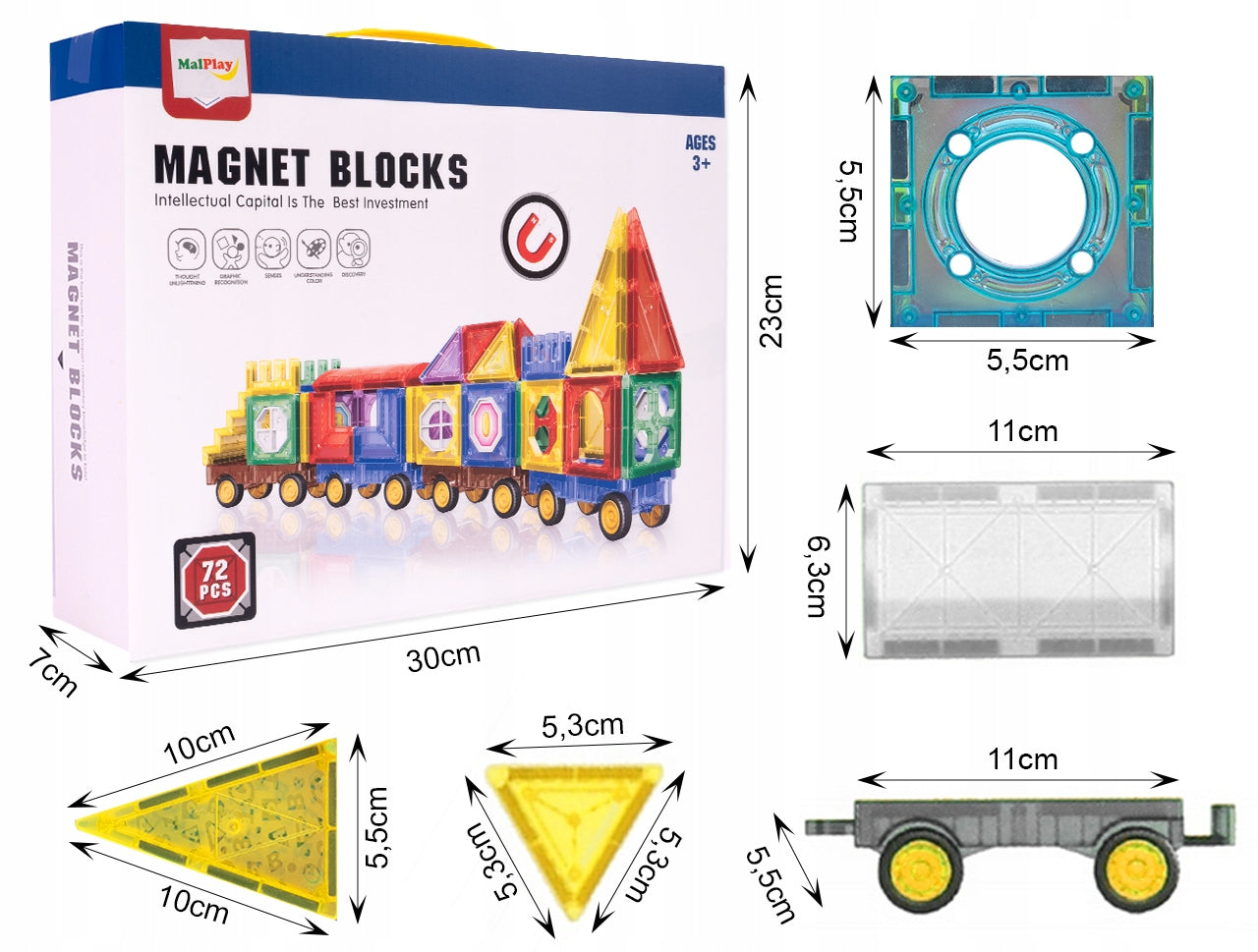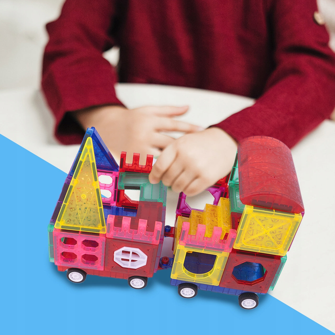 Šis 72 elementų rinkinys atveria neribotas konstravimo galimybes. Vaikai gali ne tik statyti skirtingų formų ir dydžių transporto priemones, tokias kaip traukiniai ar automobiliai, bet ir kurti sudėtingas 3D struktūras, eksperimentuoti su geometrinėmis formomis ir spalvomis. Kaladėlės pagamintos iš aukštos kokybės ABS plastiko, užtikrinant ilgaamžiškumą ir saugumą. Magnetiniai elementai lengvai sujungiami, todėl net mažiausi statytojai galės sėkmingai įgyvendinti savo idėjas. Tai puikus būdas lavinti koordinaciją, erdvinį suvokimą ir kūrybiškumą, skatinant vaiką mąstyti nestandartiškai.