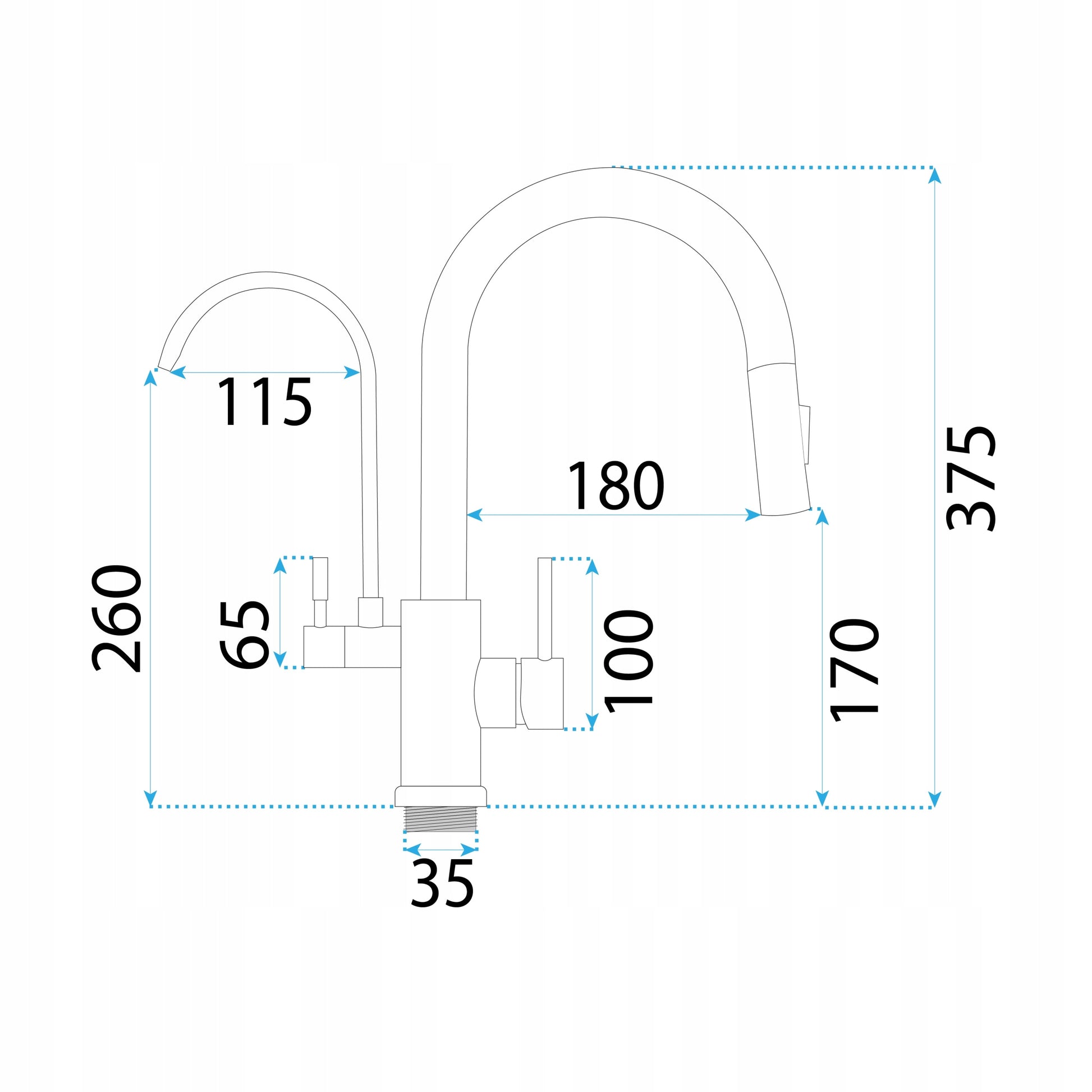 - Dviguba funkcija: Atskiri čiaupai standartiniam vandeniui (su ištraukiama galvute) ir filtruotam geriamajam vandeniui viename įrenginyje.