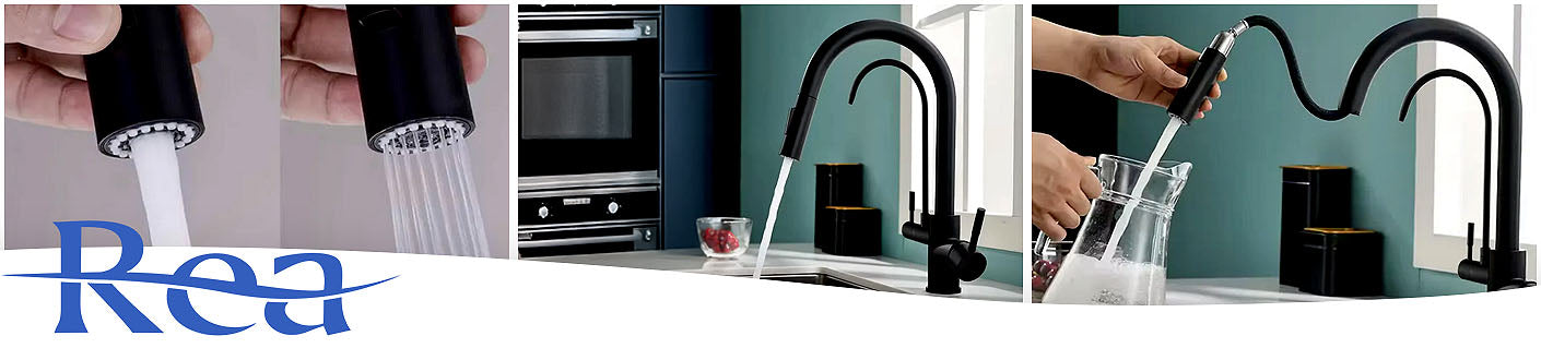 Maišytuvas virtuvinis REA ECO FRESH su dviem čiaupais juodas su ištraukiama maišytuvo galvute