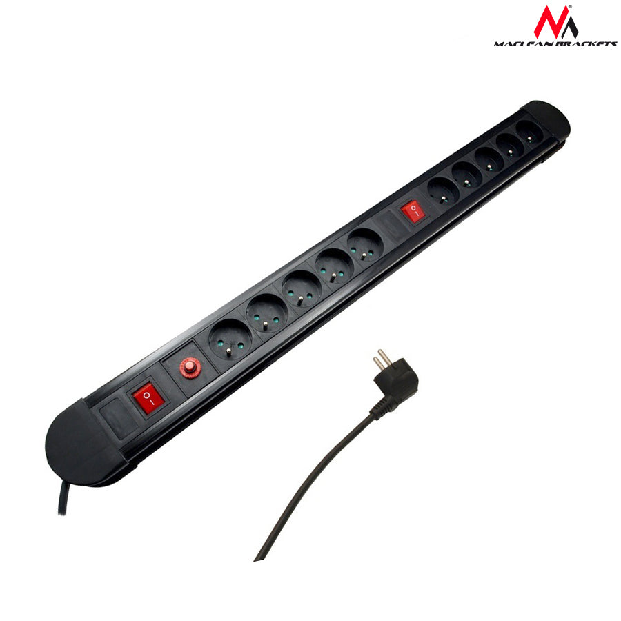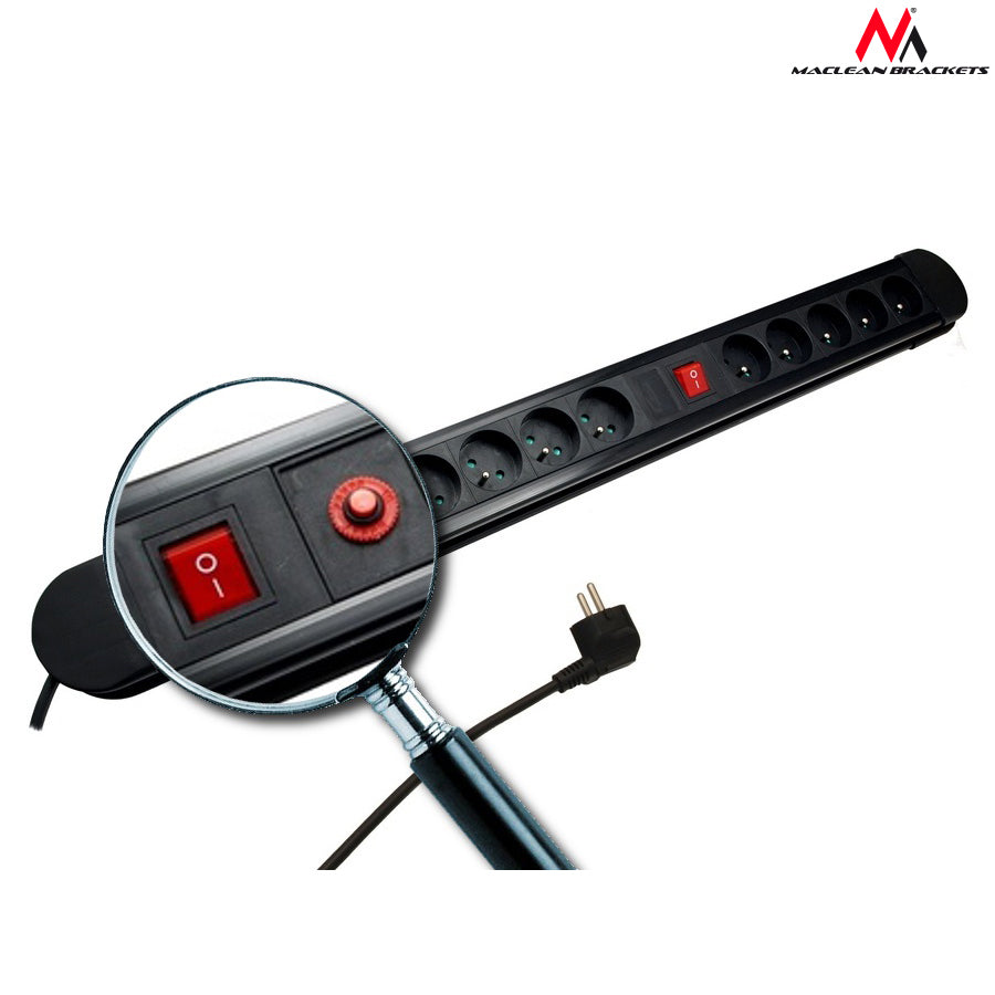 Ši Maclean Energy juosta išsiskiria savo talpumu ir universalumu. Net 10 lizdų su įžeminimu užtikrina, kad galėsite vienu metu prijungti visus reikiamus prietaisus: kompiuterius, monitorius, televizorius, žaidimų konsoles, garso sistemas, buitinę techniką ir kitą elektroninę įrangą. Ilgis – 1,5 metro – suteikia pakankamai lankstumo patogiai išdėstyti juostą jūsų darbo vietoje, namuose ar biure.