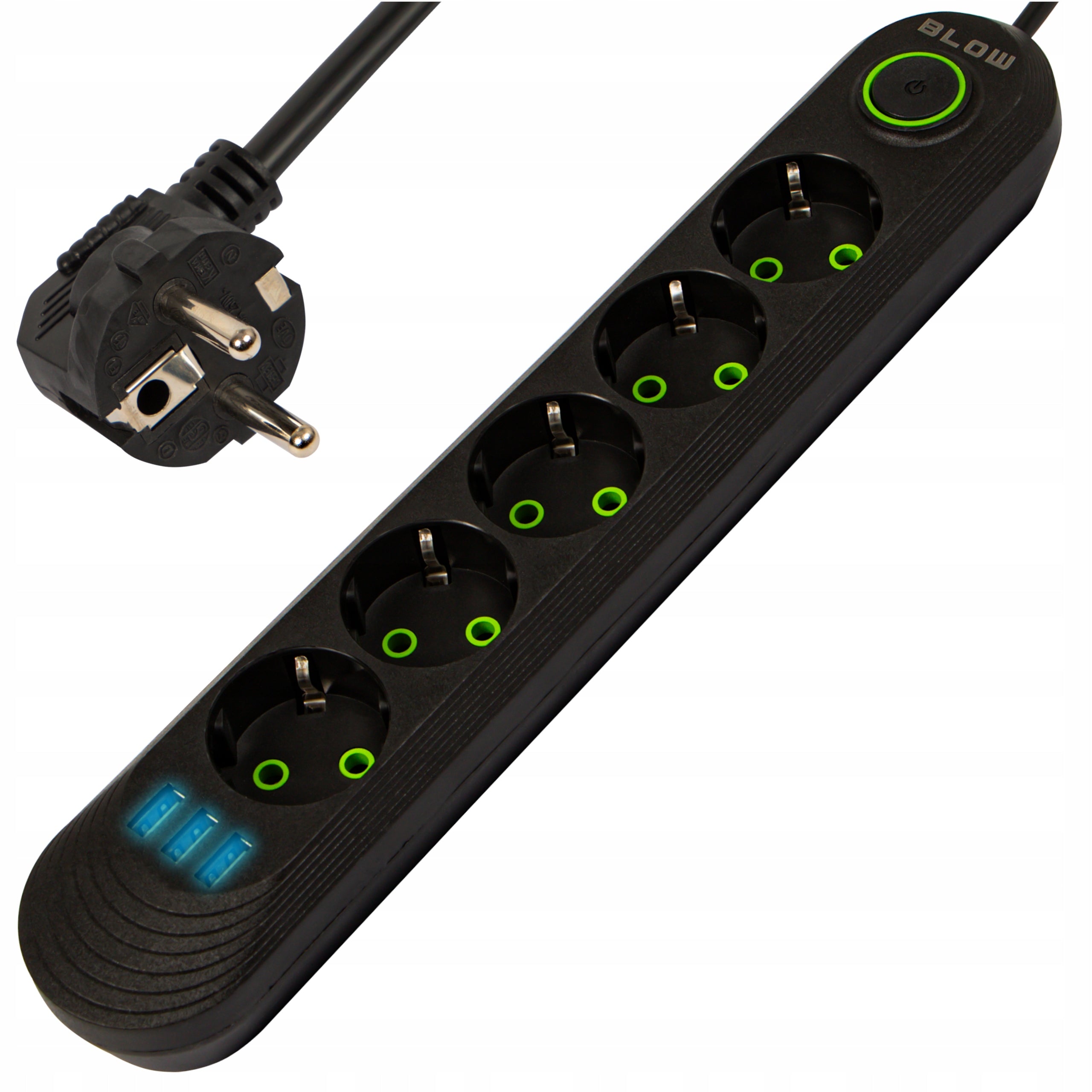 Patogumas ir funkcionalumas jūsų namams: Prailgintuvas BLOW su 5 lizdais ir 3 USB jungtimis