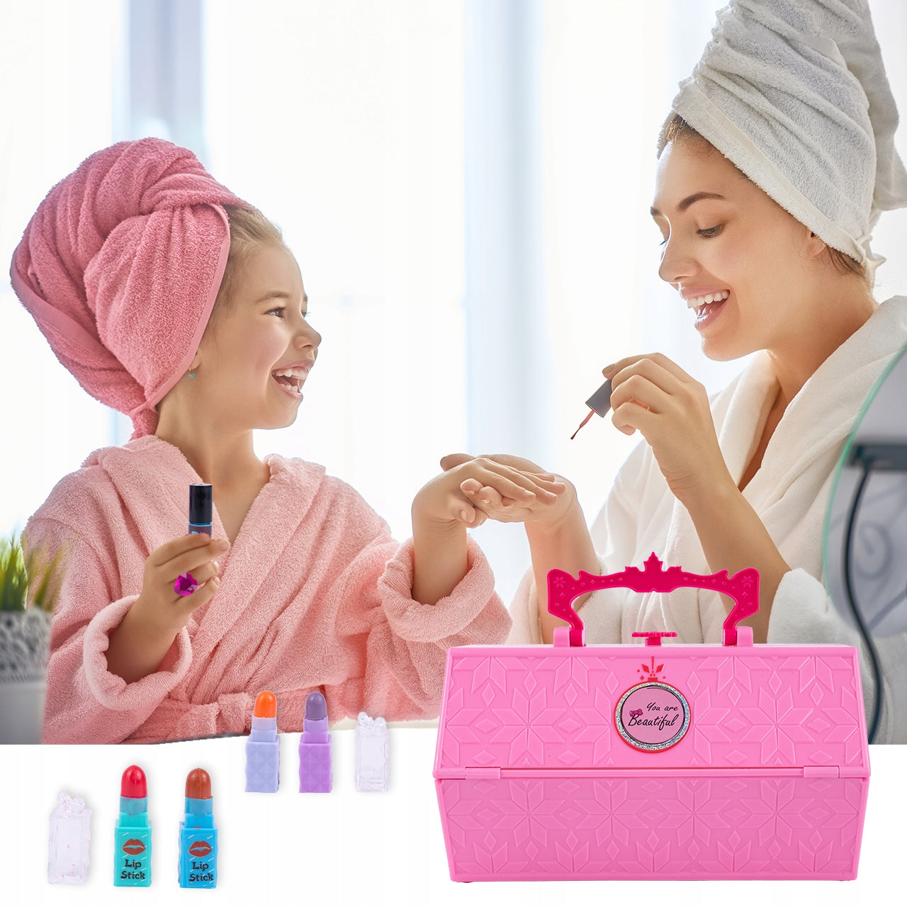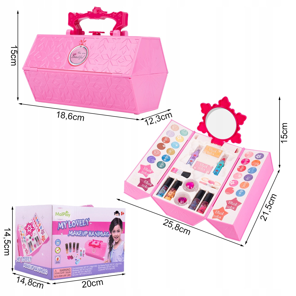 Šis nešiojamas makiažo lagaminėlis yra viskas, ko reikia mažajai stilistei! Sukurtas atsižvelgiant į vaikų poreikius ir saugumą, jis apjungia žaismingą dizainą su praktiškumu. Lagaminėlis yra tvirtas, bet lengvas, turi patogią rankenėlę, todėl jį lengva pasiimti su savimi keliaujant, į svečius pas močiutę ar tiesiog žaidžiant kieme. Kiekviena priemonė turi savo vietą, todėl tvarkos palaikymas tampa lengvesnis. Spalvingas ir patrauklus dizainas iš karto patraukia dėmesį ir žadina vaiko vaizduotę, leisdamas jam jaustis lyg tikroje grožio salone.