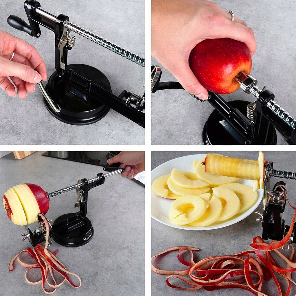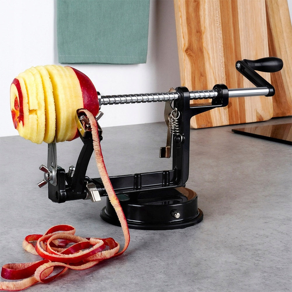 Ši pjaustyklė yra tikras atradimas visiems, mėgstantiems eksperimentuoti virtuvėje ir ieškantiems naujų būdų patiekti maistą. Jos pagrindinė funkcija – vienu metu nulupus žievelę, vaisių ar daržovę supjaustyti vientisa spirale. Tai itin patogu ruošiant originalias keptas bulvytes, dekoratyvius vaisių bokštelius ar daržovių „makaronus“. Spiralės storis siekia apie 3 mm, užtikrinant tolygų ir estetišką paruošimą. Pjaustyklė puikiai tinka apvaliems vaisiams ir daržovėms, tokiems kaip obuoliai, kriaušės, bulvės, agurkai, ridikėliai, cukinijos ir daugelis kitų.