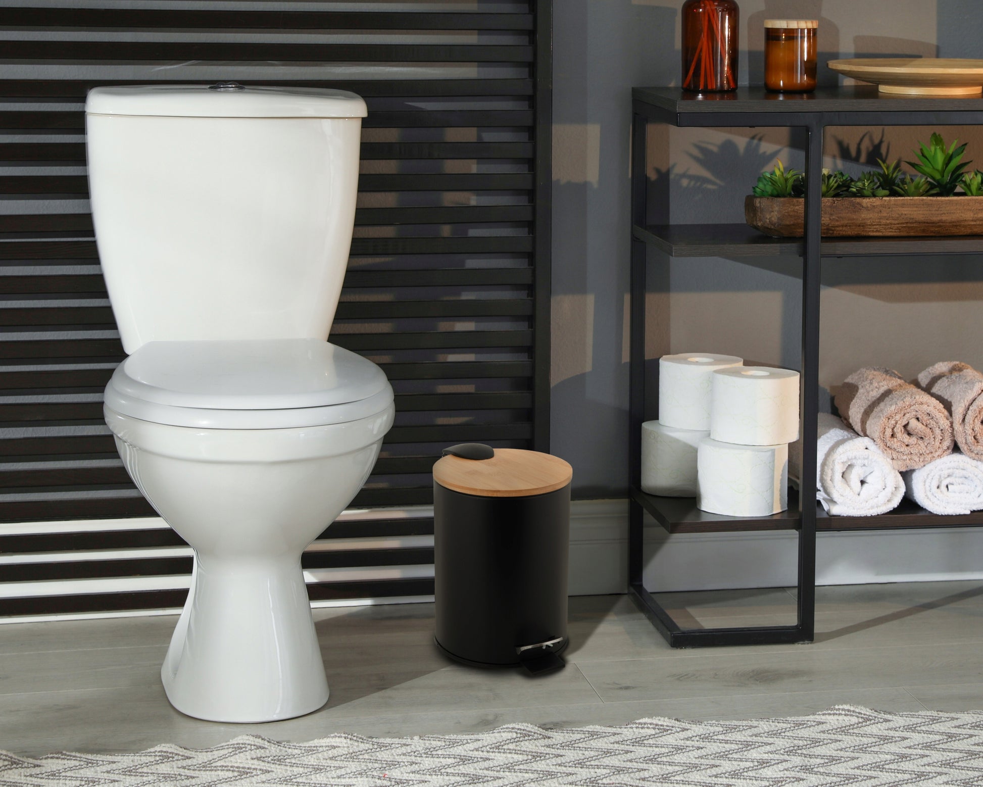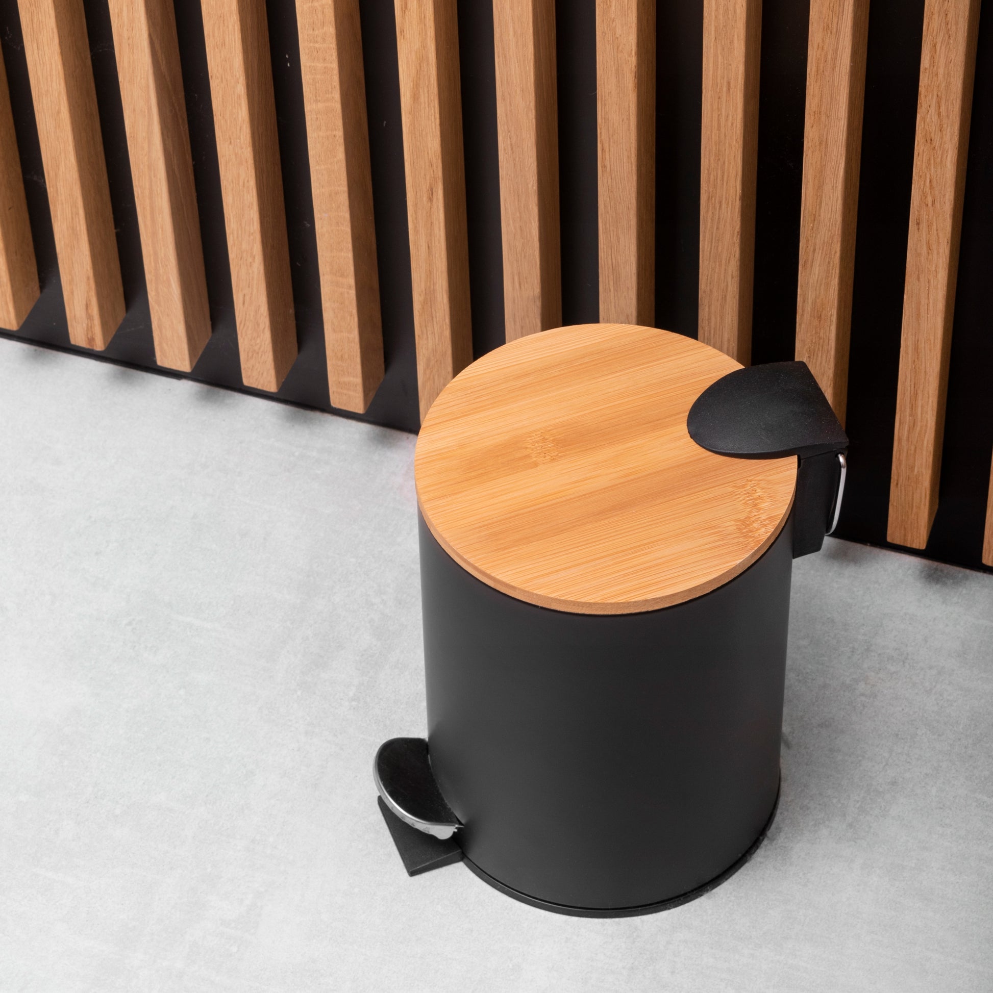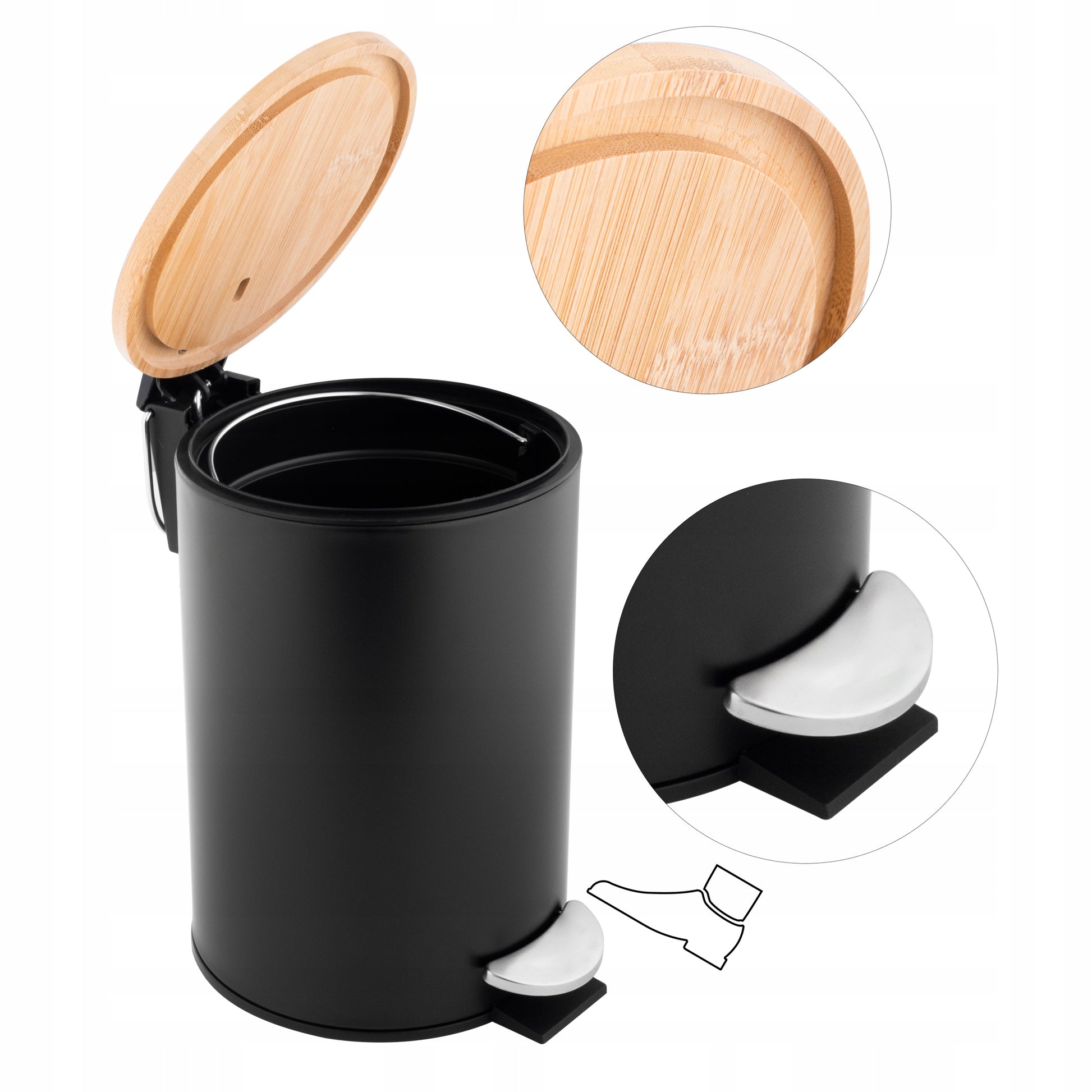 Atnaujinkite savo vonios kambarį su šiuo stilingu ir itin praktišku YOKA HOME šiukšlių kibirėliu. Sukurtas su ypatingu dėmesiu detalėms, šis 3 litrų talpos juodas matinio paviršiaus kibirėlis su natūralaus bambuko akcentu taps ne tik nepakeičiamu kasdienio naudojimo elementu, bet ir puikiai papildys modernų ar lofto stiliaus interjerą. Pamirškite nepatogumus – patogus pedalas leidžia atidaryti dangtelį nenaudojant rankų, o tylaus uždarymo sistema (Soft Close) užtikrina ramybę ir apsaugo nuo nepageidaujamų garsų.