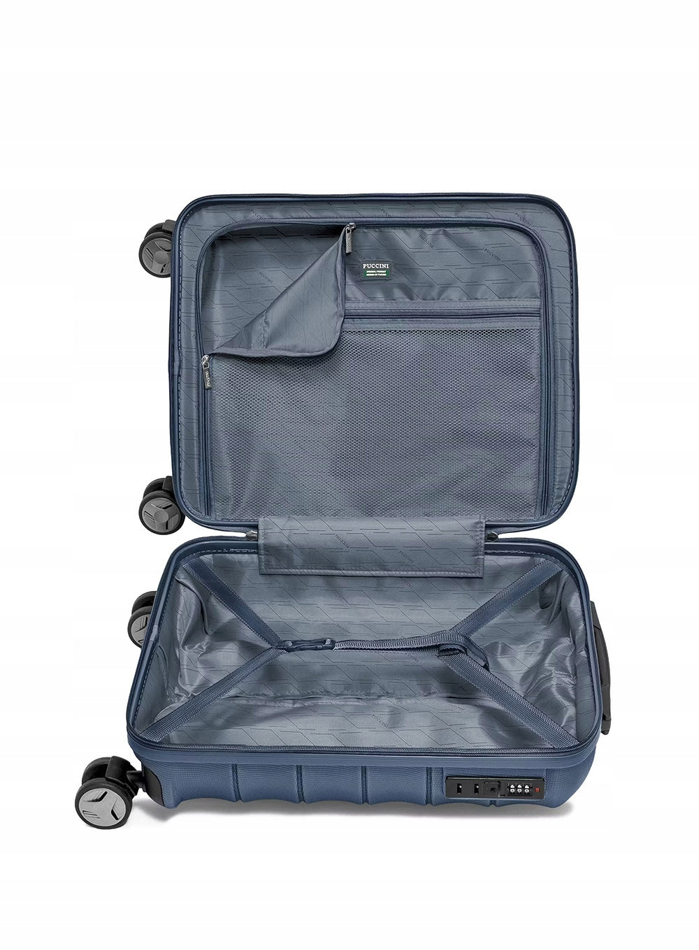 Mažas lagaminas Puccini Cairo pilnai paruoštas kelionei. Jame rasite viską, ko reikia patogiam ir organizuotam bagažo tvarkymui.