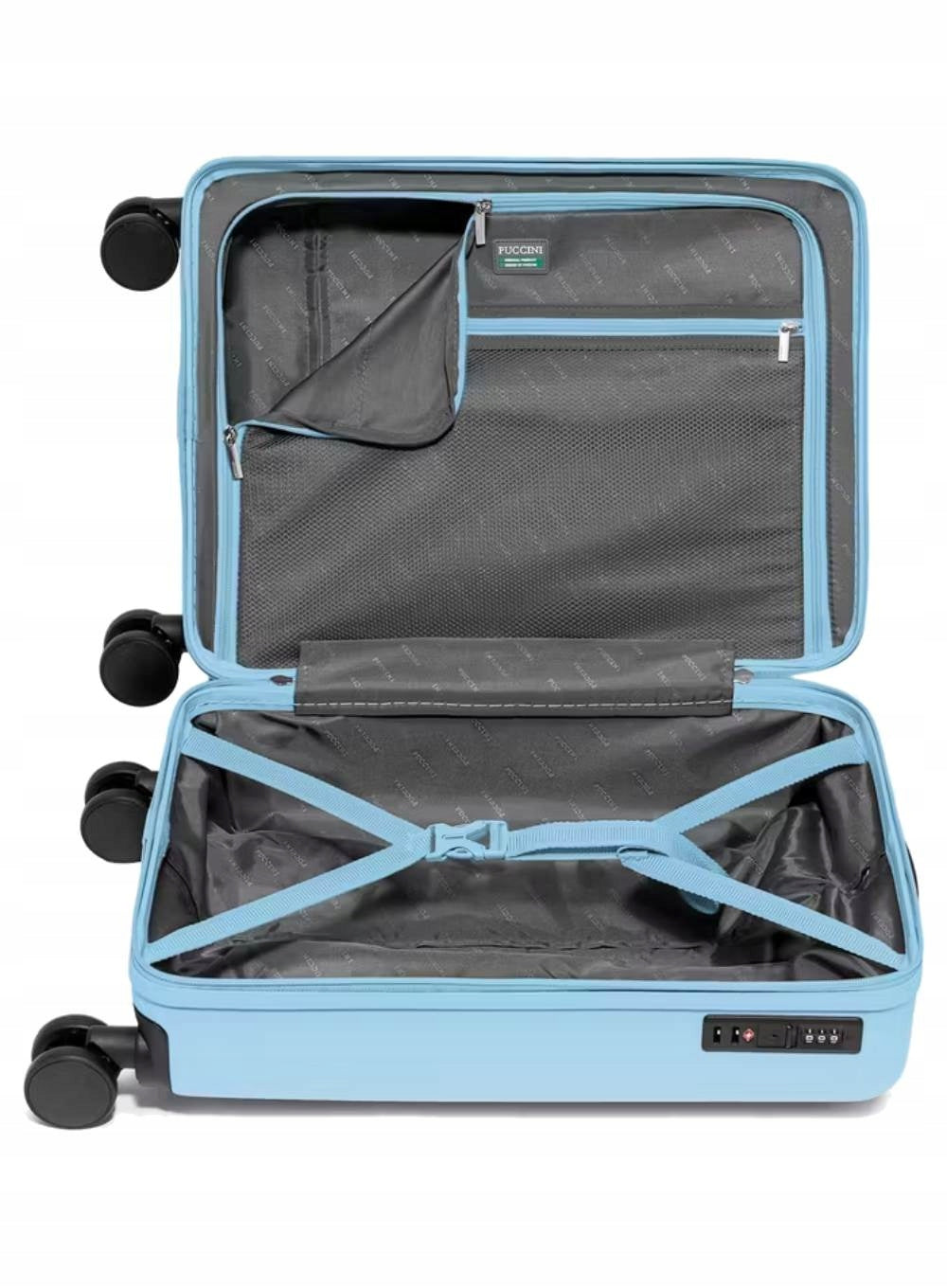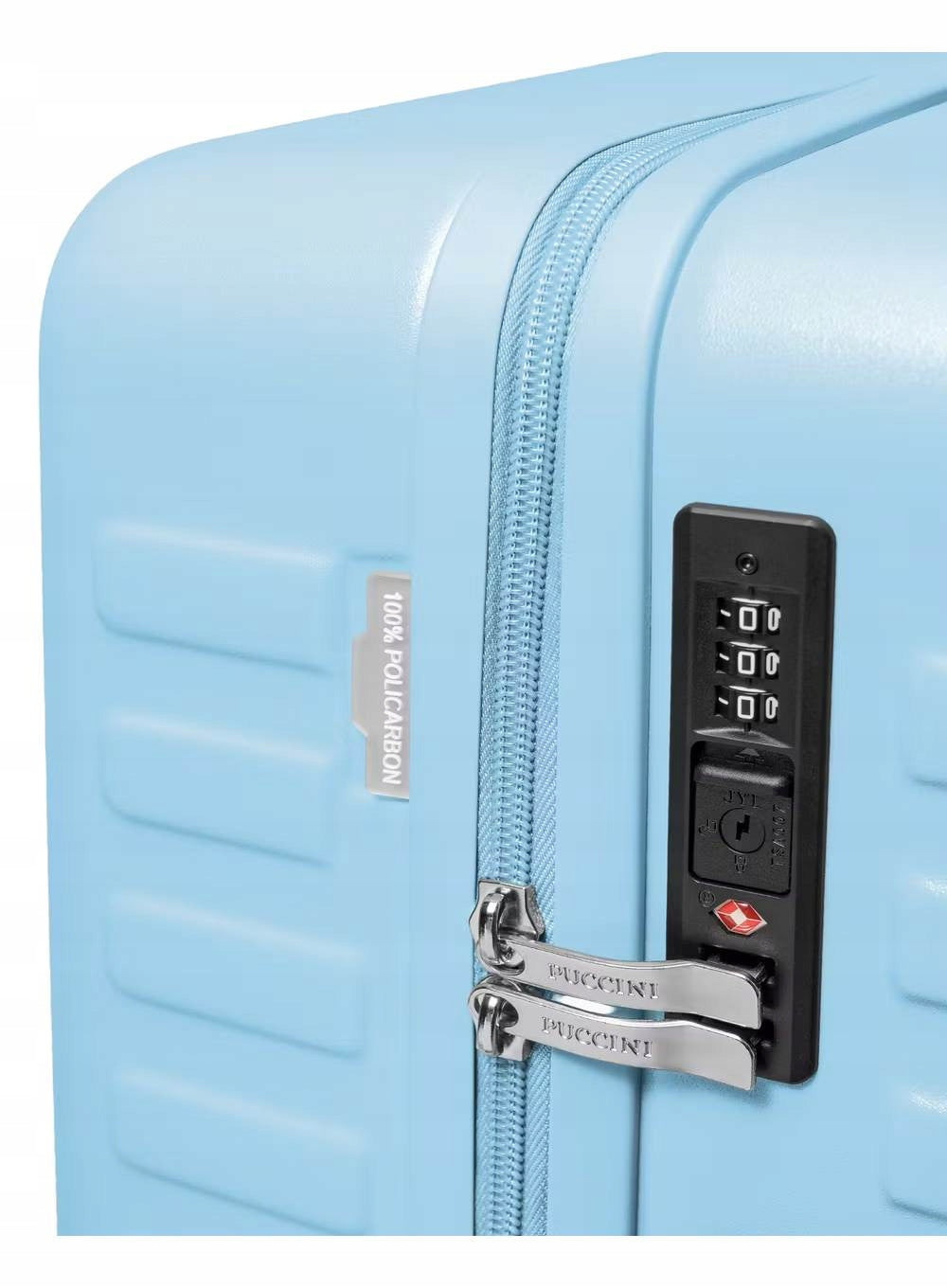 Su „Puccini Munich“ lagaminu kiekviena kelionė tampa lengvesnė ir saugesnė. Jo dizainas sujungia estetiką ir funkcionalumą, todėl jis puikiai tiks tiek verslo kelionėms, tiek savaitgalio išvykoms. Mėlyna spalva suteikia jam modernumo ir išskirtinumo, o reljefiniai, banguoti dryžiai ant korpuso ir subtilus „PUCCINI“ logotipas pabrėžia aukštą gamintojo kokybę. Šis lagaminas – tai jūsų patikimas kelionių palydovas.