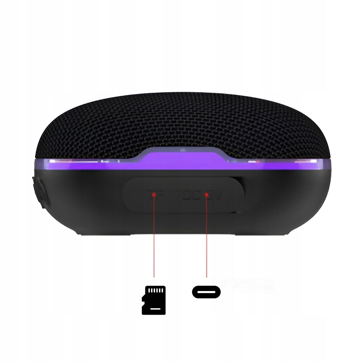 - Ryšys ir funkcijos: „Bluetooth 5.3“, FM radijas, USB-C, TF (microSD) kortelės lizdas, integruotas mikrofonas, 10m „Bluetooth“ veikimo spindulys, dinaminis LED RGB apšvietimas, IPX4 atsparumas vandeniui.