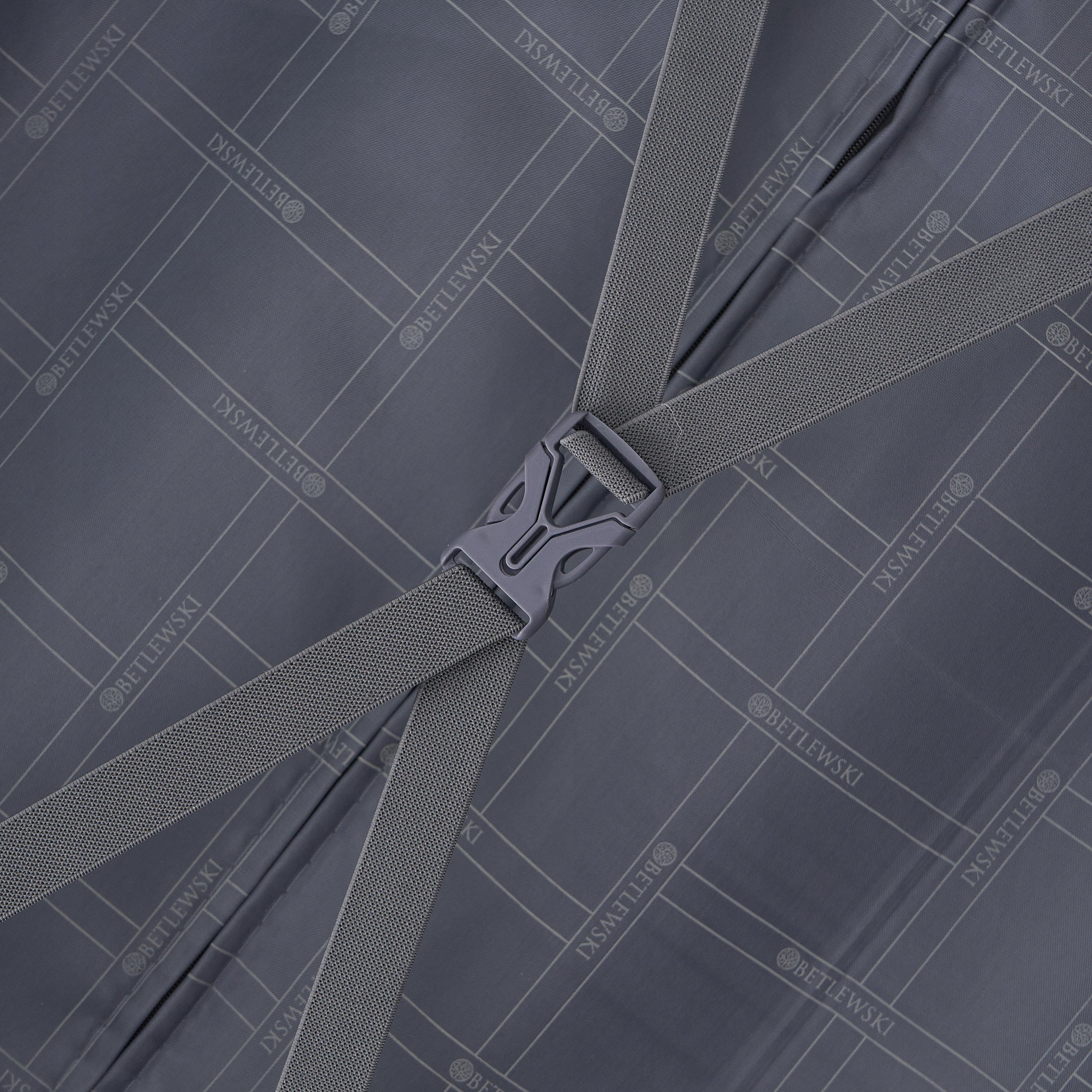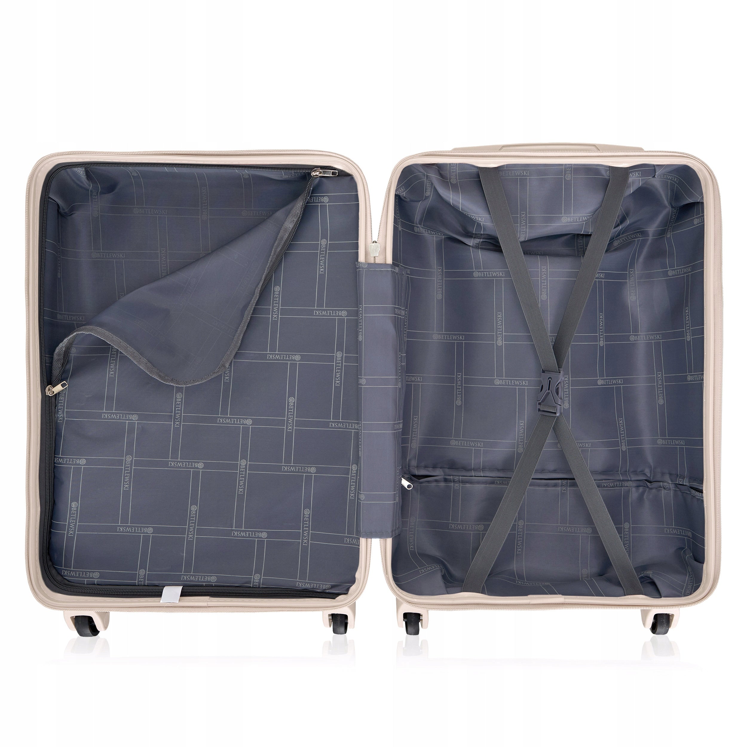 Nepaisant kompaktiškų matmenų (55x38x25 cm), šis 38 litrų talpos lagaminas pasižymi išties didele talpa. Viduje rasite tvarkingą, juodo poliesterio pamušalą su išskirtiniu Betlewski® logotipu. Pagrindinė daiktadėžė yra padalinta į dvi dalis, kurios užsegamos užtrauktuku, o papildomi tvirtinimo diržai padeda tvarkingai sutvirtinti daiktus. Toks išplanavimas užtikrina, kad viskas liktų savo vietose net ir intensyviausios kelionės metu.