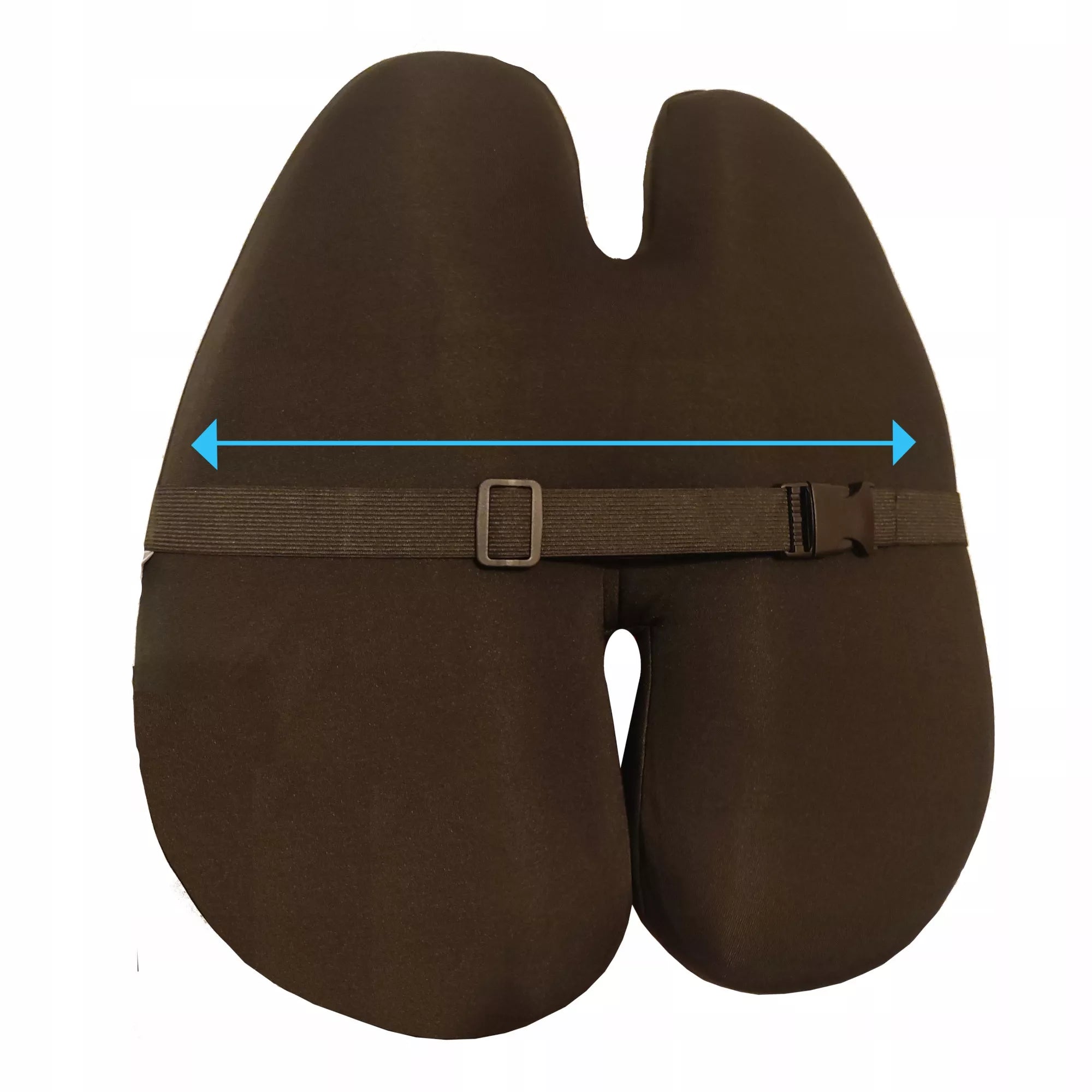 - Reguliuojamas elastingas tvirtinimo diržas (iki 110 cm apimties), užtikrinantis stabilų pagalvės fiksavimą prie įvairių kėdžių ar automobilio sėdynių.