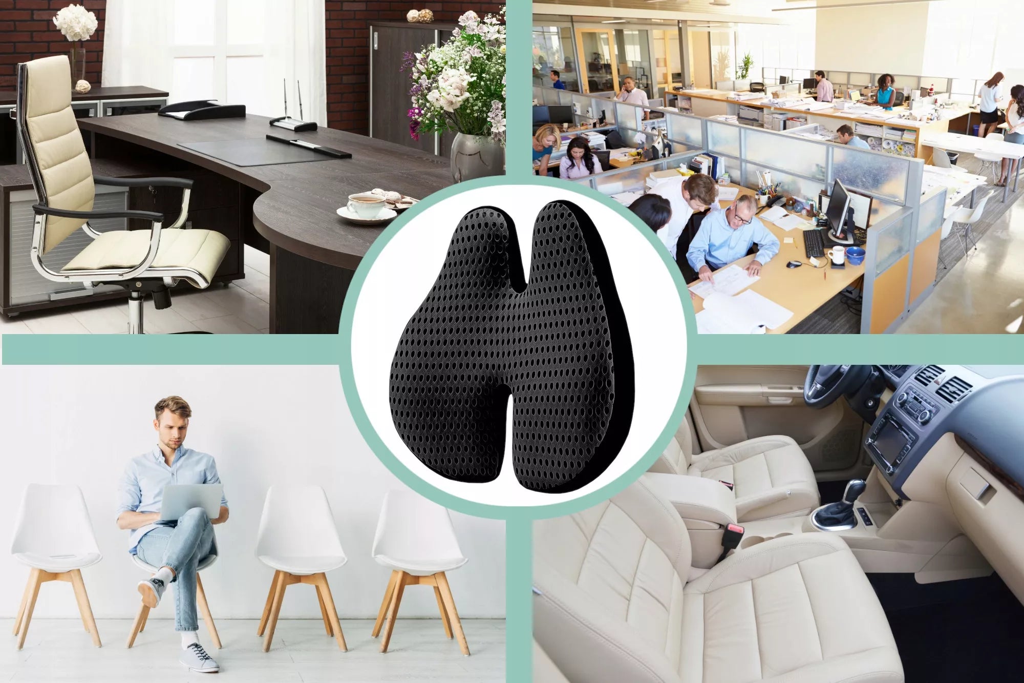 - Universalumas: Lengvai pritaikoma biuro kėdėse, automobiliuose ar namuose.