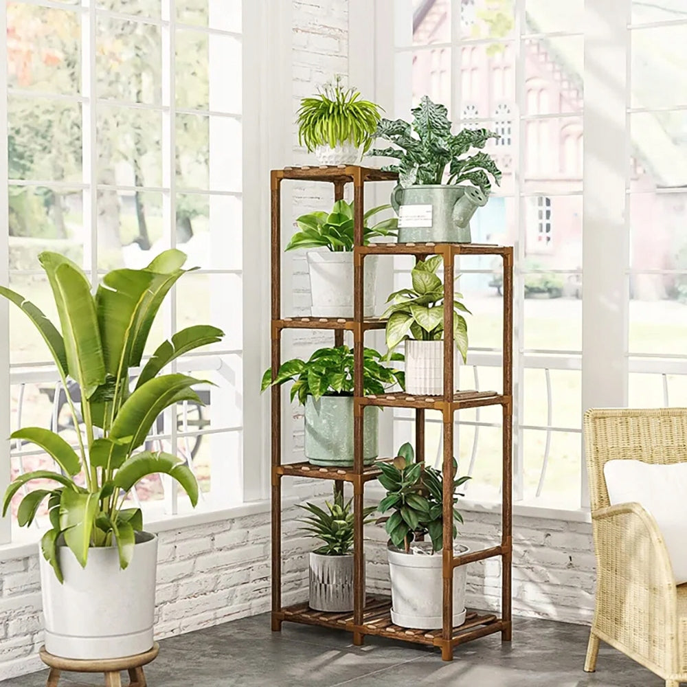 Medinis gėlių stovas, augalų ir vazonų laikiklis, 7 lentynų lentyna
