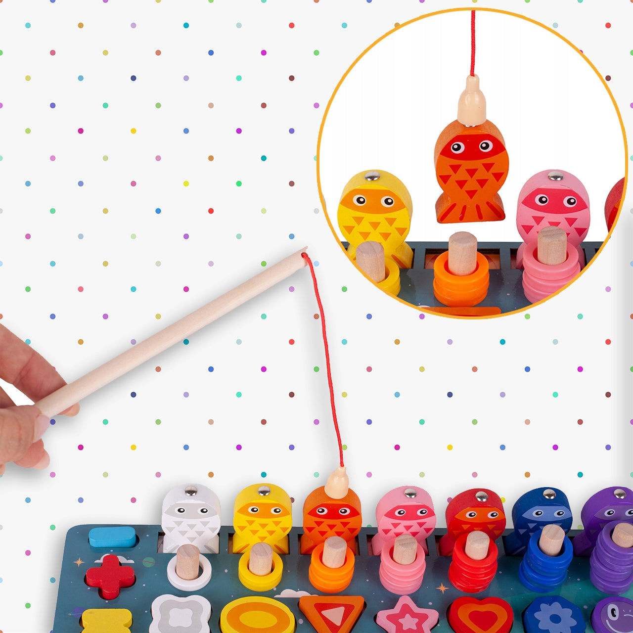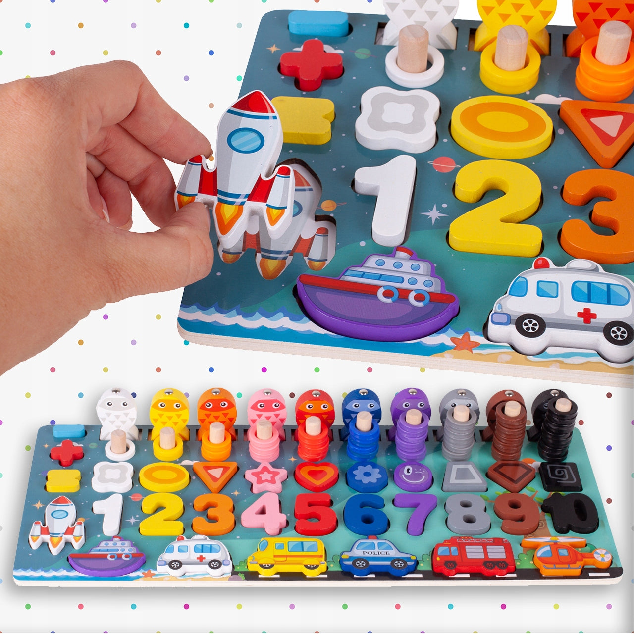 Šis žaislas yra daug daugiau nei paprasta dėlionė. Tai platforma, skirta vaikų kognityviniams gebėjimams lavinti. Vaikai gali mokytis atpažinti skaičius, formas, spalvas ir transporto priemones. Jie gali lavinti smulkiąją motoriką dėdami karoliukus ant stulpelių pagal skaičių ir spalvą, taip pat spręsdami pirmuosius matematinius uždavinius. Žvejybos elementas padeda tobulinti rankos-akis koordinaciją ir tikslumą.