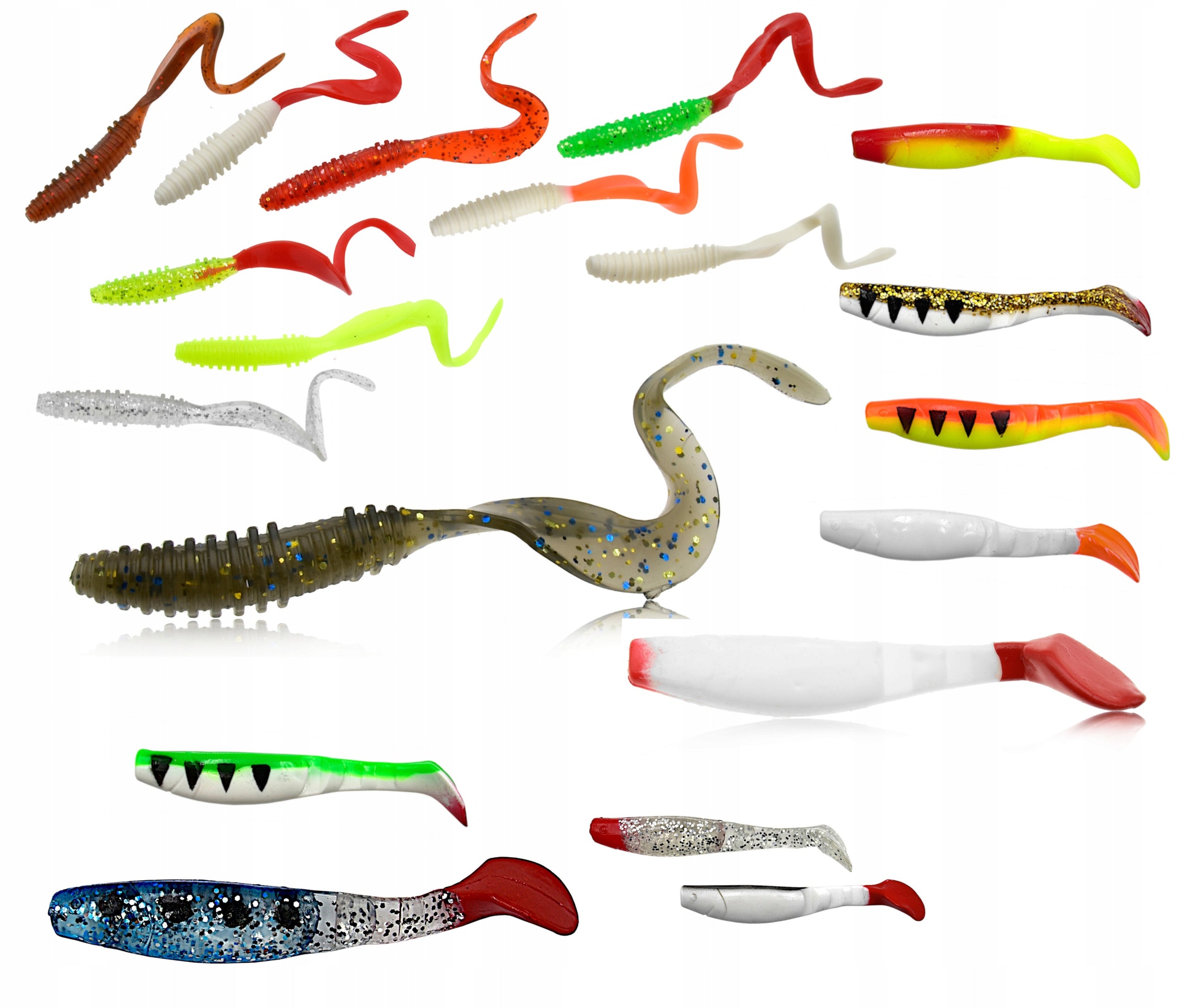 - 2 vnt. Dirbtiniai masalai (kopyto, tvisteris, 10-12 cm ilgio, 8.4g-13.4g svorio, įvairių spalvų).