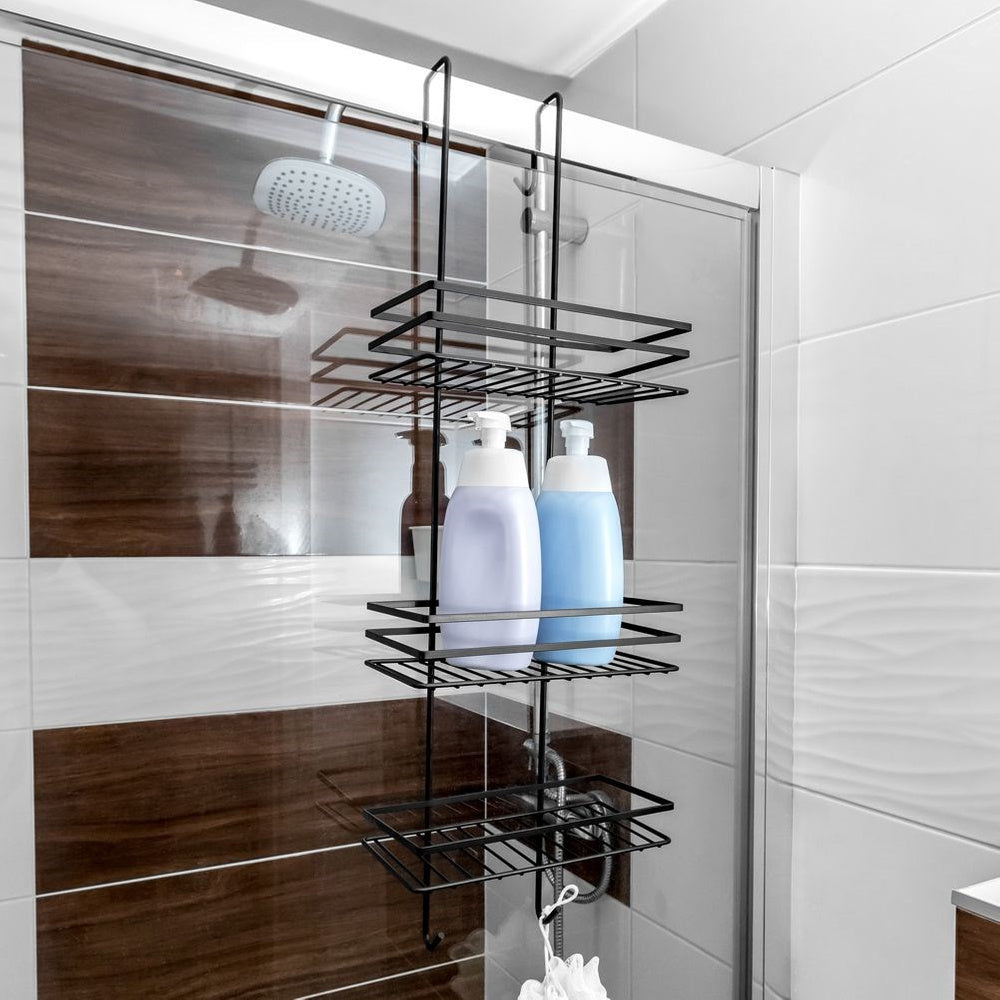 - 1 x Pakabinama metalinė dušo lentyna su 3 pakopomis ir 4 kabliukais