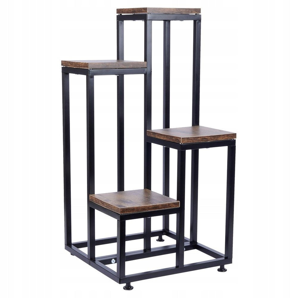 Šis gėlių stovas pagamintas iš aukštos kokybės juodo metalo, kuris suteikia jam tvirtumo ir ilgaamžiškumo. Lentynos pagamintos iš kokybiškos MDF plokštės, imituojančios tamsaus, natūralaus medžio raštą, puikiai dera su metaliniu rėmu. Toks medžiagų ir spalvų derinys sukuria madingą, industrinio stiliaus (loft) išvaizdą, kuri lengvai papildys bet kokį interjerą – nuo svetainės ir virtuvės iki biuro ar laukiamojo. Šis stovas ne tik funkcionalus, bet ir taps išskirtine jūsų namų puošmena.