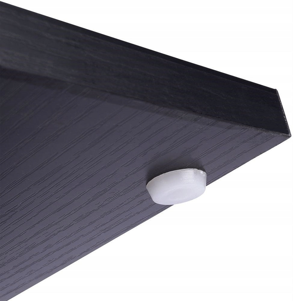 - Stovas pagamintas iš juodo metalo, o lentynos iš MDF su natūralaus medžio struktūra.
