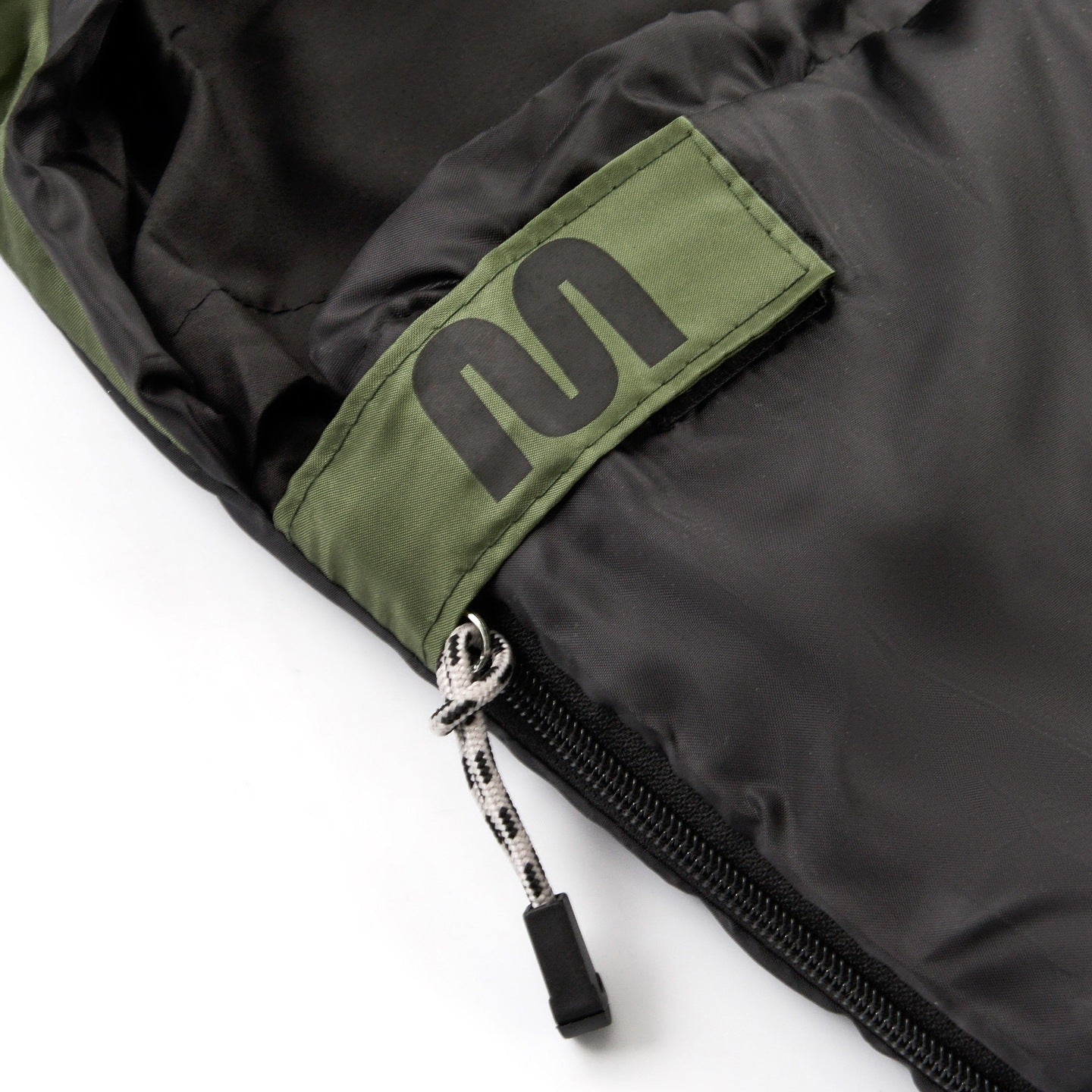 - Papildomos savybės: gobtuvas, kišenėlė smulkiems daiktams, galimybė sujungti du miegmaišius, pakabinimo kilpa.