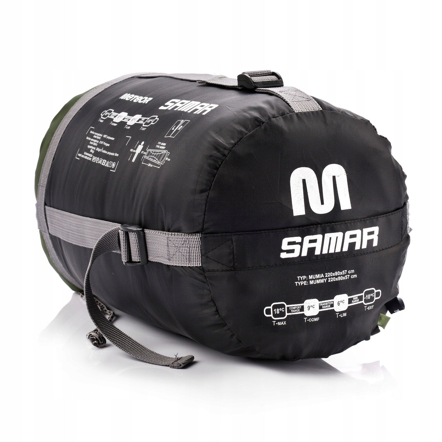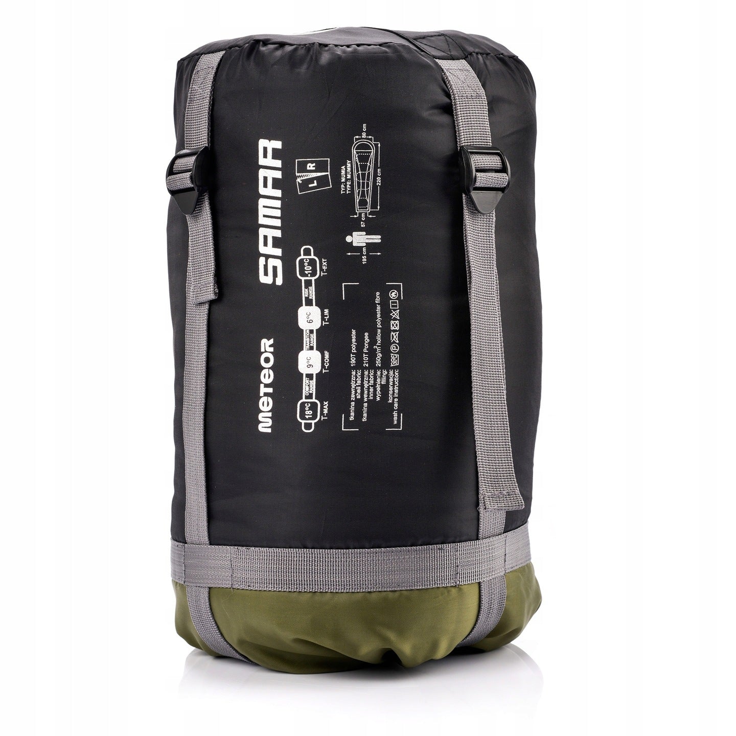 Miegmaišis METEOR SAMAR R – tai patogus ir šiltas mumijos tipo miegmaišis, puikiai tiks kelionėms bei stovyklavimui. Su užtrauktuku dešinėje pusėje, jis suteikia komfortą net ir šaltomis naktimis, išlaikydamas šilumą ir užtikrindamas gerą poilsį. Poliesterio užpildas ir pamušalas užtikrina švelnumą, o Hollow Fibred užpildas garantuoja šilumos izoliaciją ir mažą svorį. Kompresinės juostos leidžia patogiai suspausti miegmaišį ir sutaupyti vietos kuprinėje. Be to, jį galima jungti su kitu miegmaišiu, kad suteiktų dar daugiau komforto.