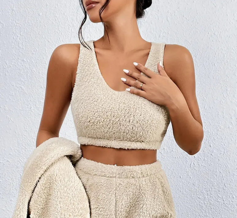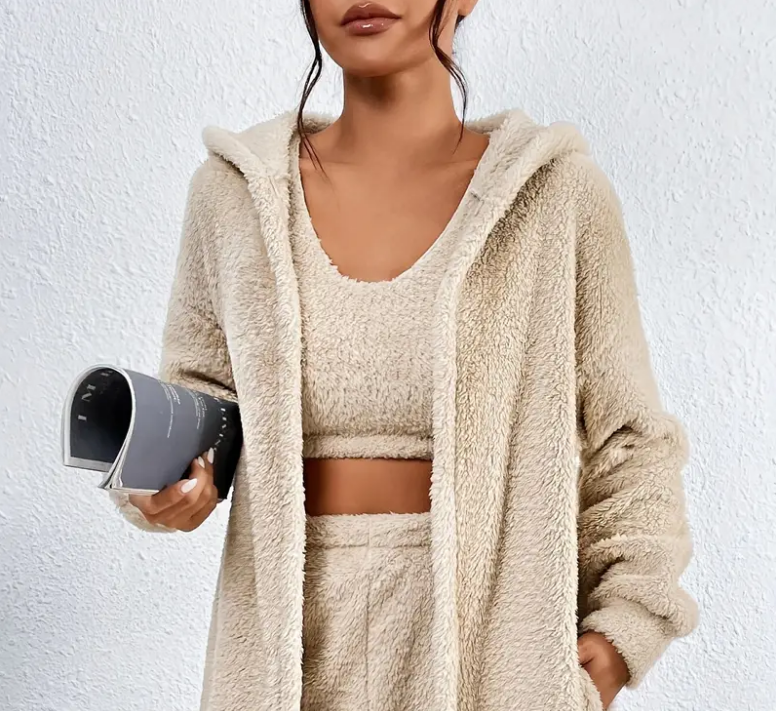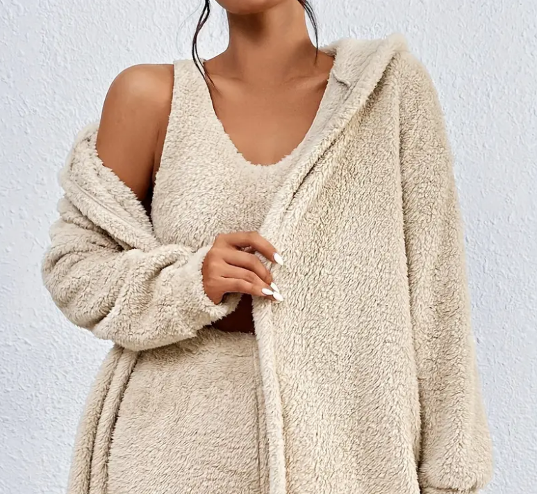 Miego rūbai, moteriškas chalatas "Apkabink" 3 dalių komplektas.