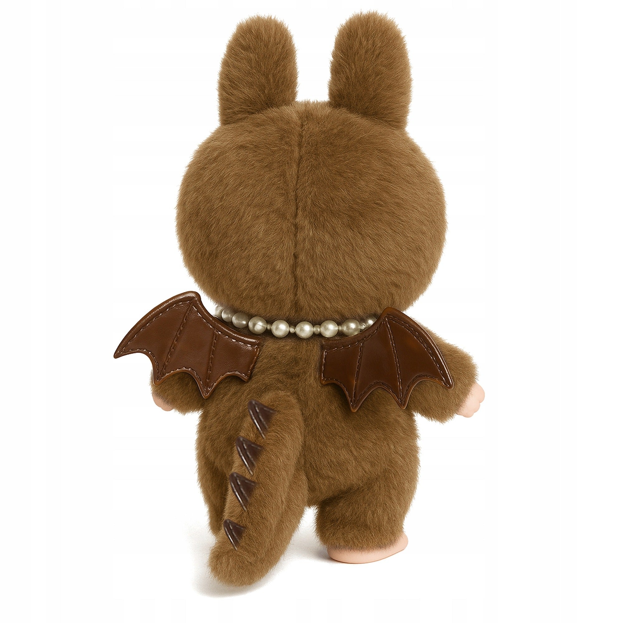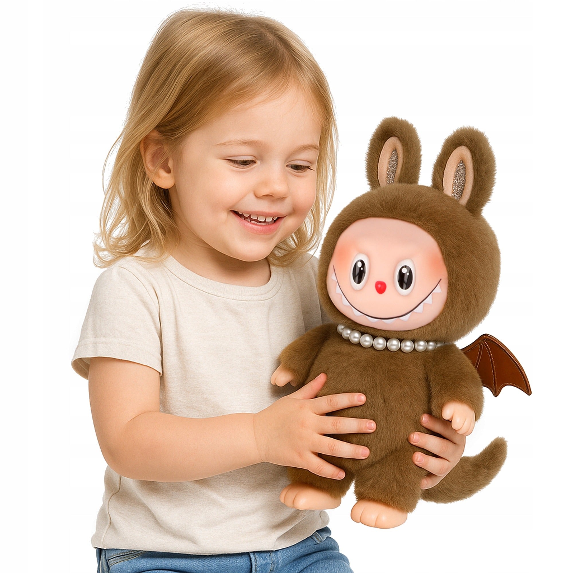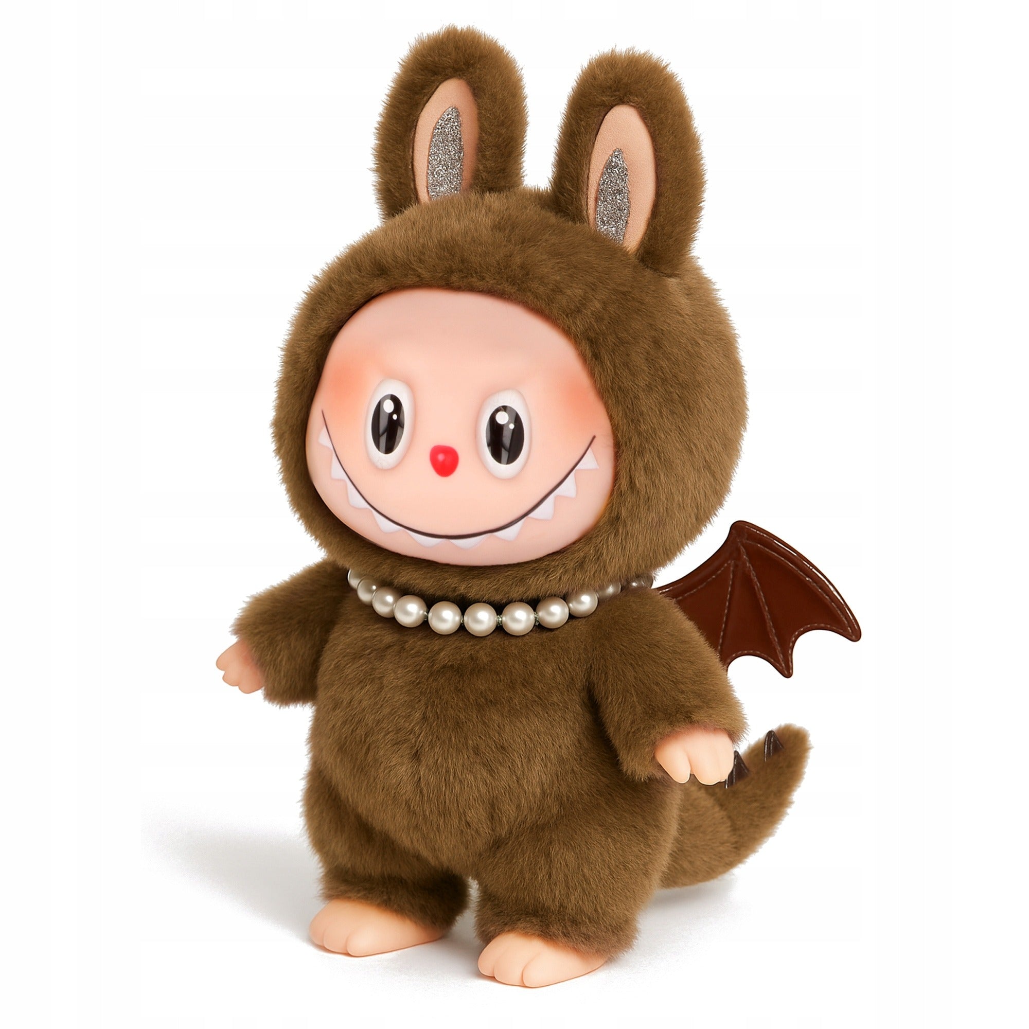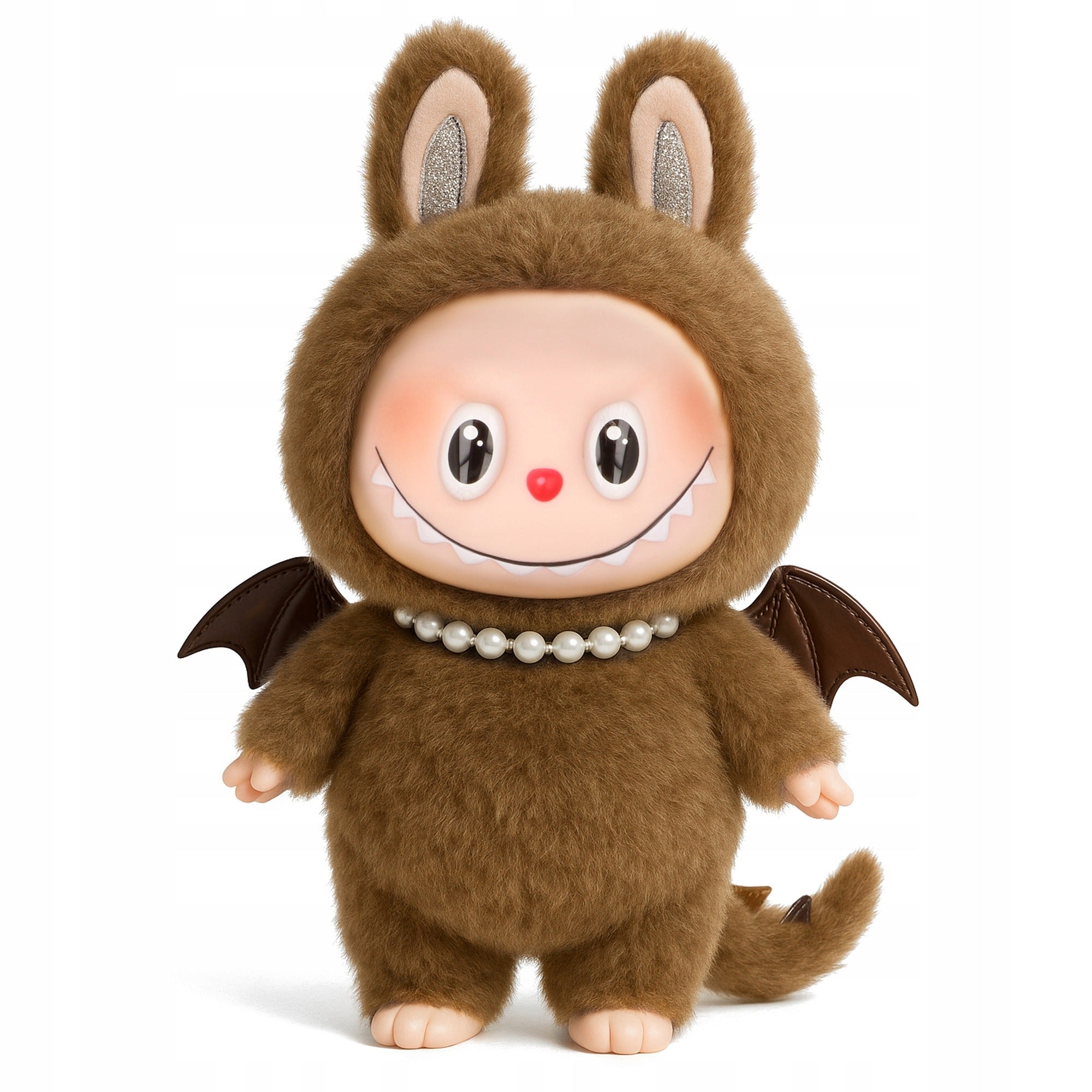 Minkštas žaislas Labubu 30 cm – tai išskirtinis pliušinis žaislas, kuris sujungia žavesį, išraiškingą dizainą ir nepriekaištingą kokybę. Šis unikalus POP MART kūrinys išsiskiria savo charakteriu – rudo atspalvio kailiniu kostiumu, ilgaausiais zuikio ausimis ir mažais šikšnosparnio sparnais ant nugaros. Didelės akys, plati šypsena ir subtiliai paraudę skruostai suteikia Labubu žaislui gyvybingumo, o dekoratyvinis perliukų vėrinys ant kaklo pabrėžia jo išskirtinumą. Tai ne tik mielas pliušinis žaislas, bet ir stilinga kolekcinė figūrėlė, kuri traukia akį ir kelia teigiamas emocijas.