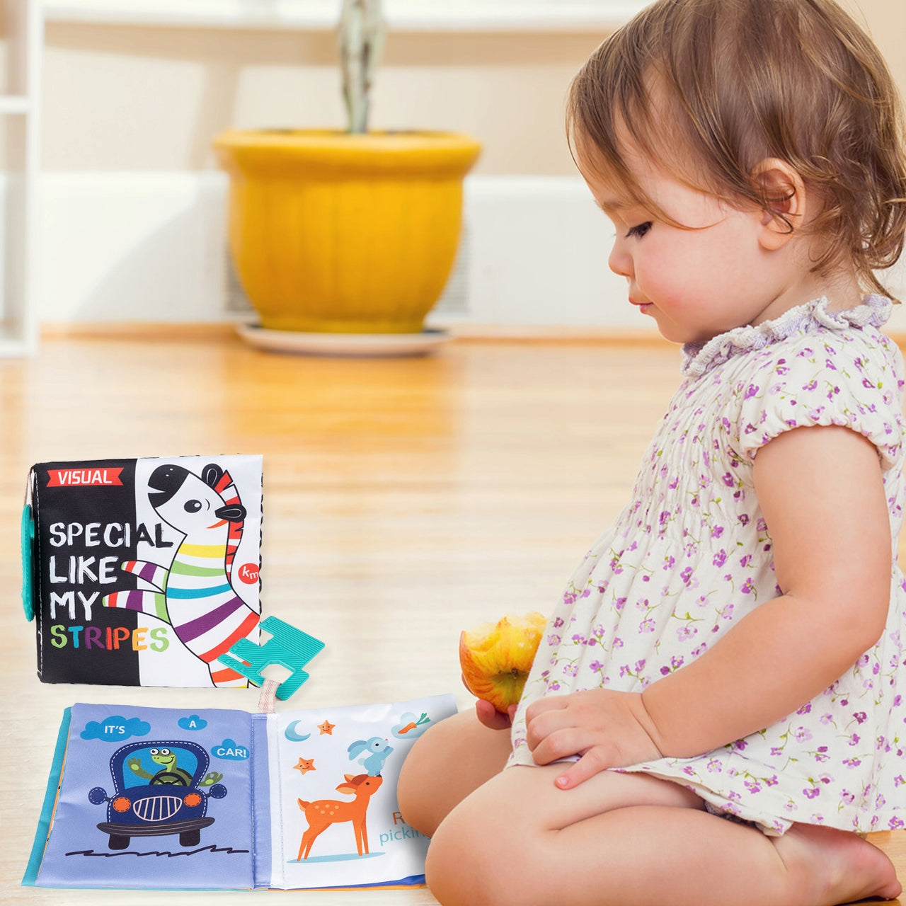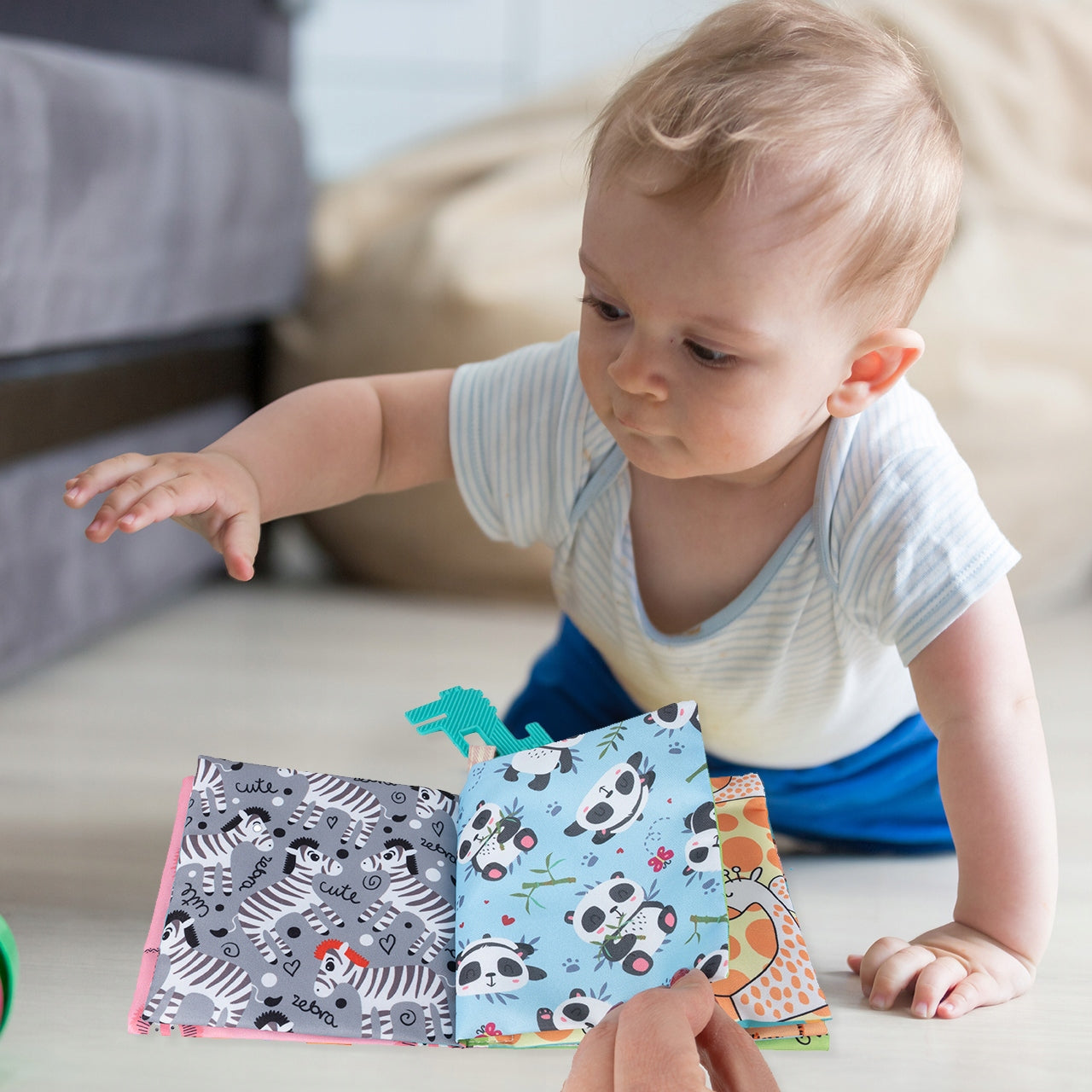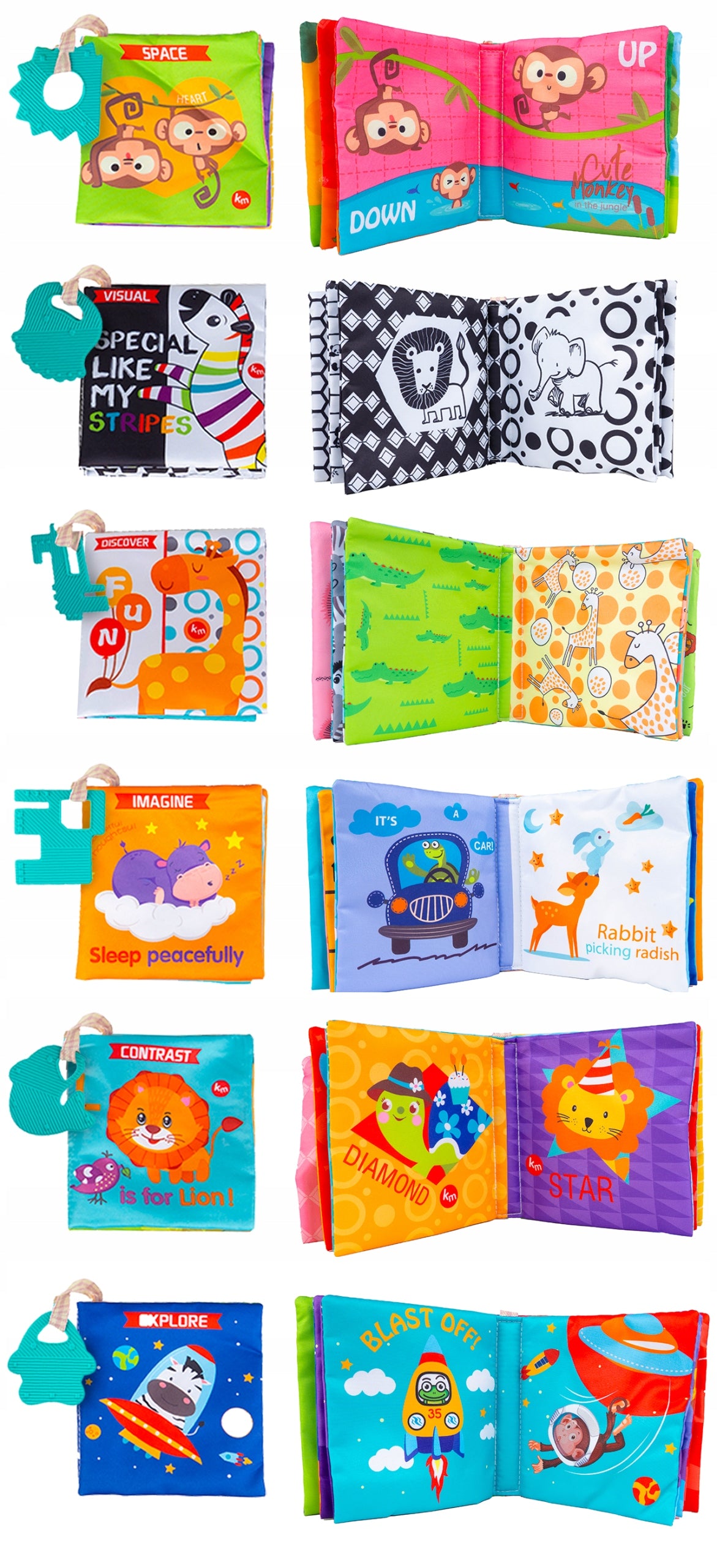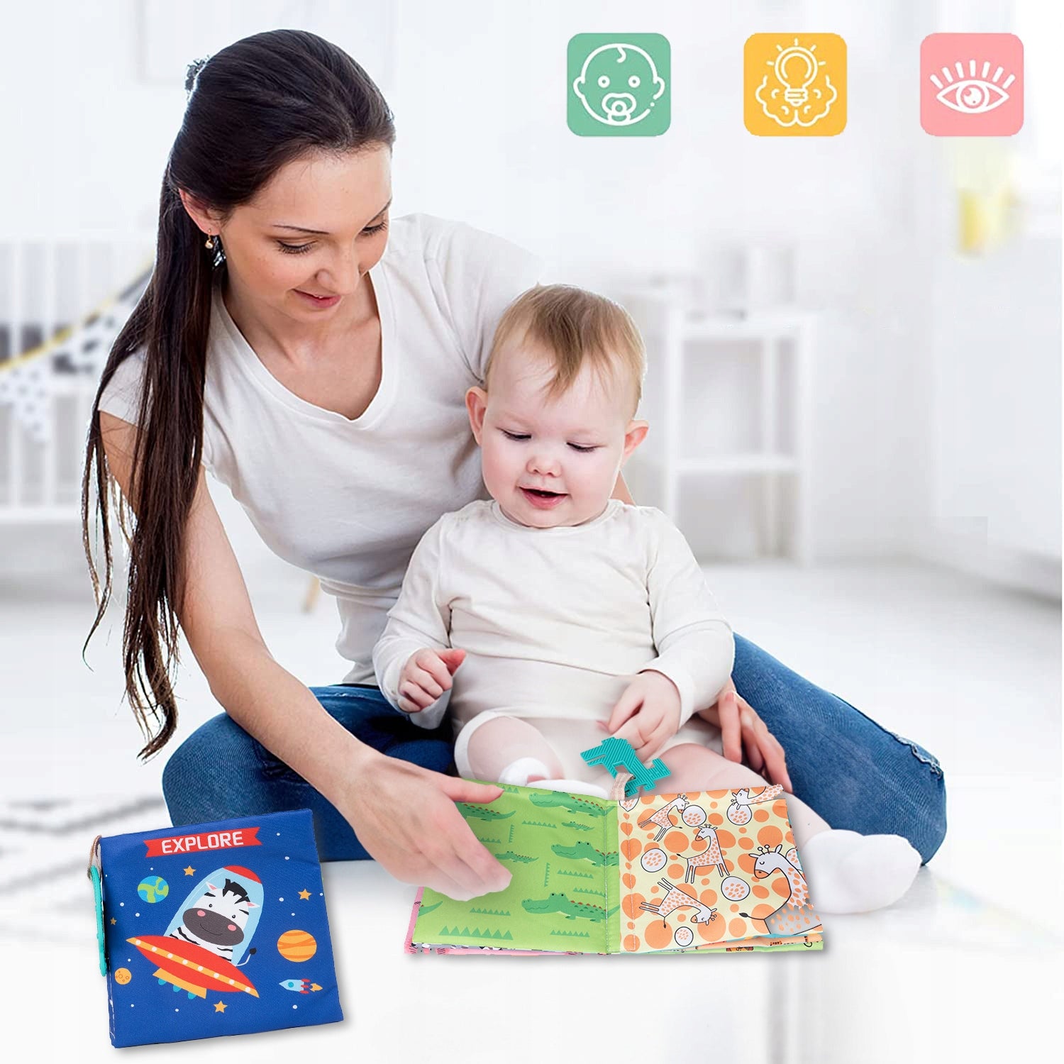 - Stimuliuoja visus kūdikio pojūčius: regą (ryškios spalvos), lytėjimą (įvairios faktūros, švelnumas), klausą (šlamantys puslapiai, pypsiukas).