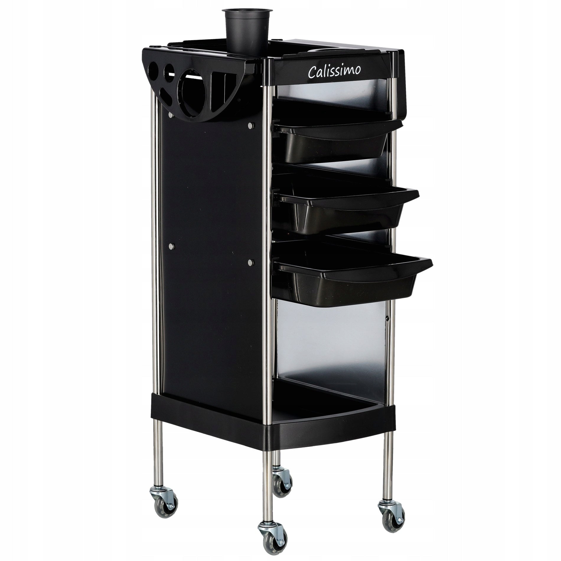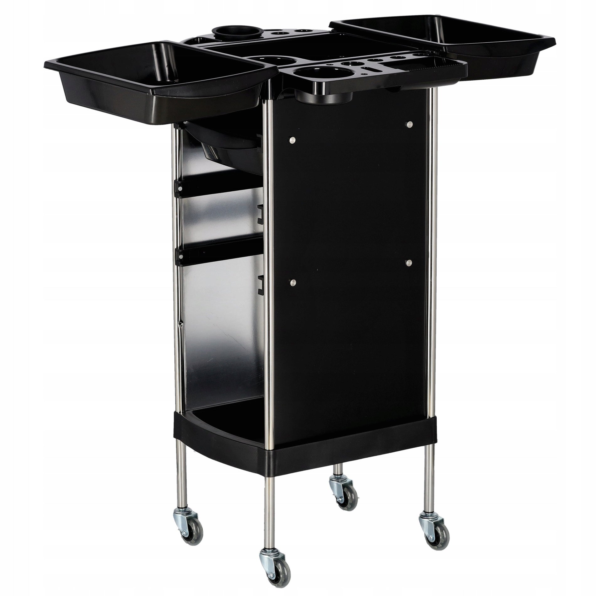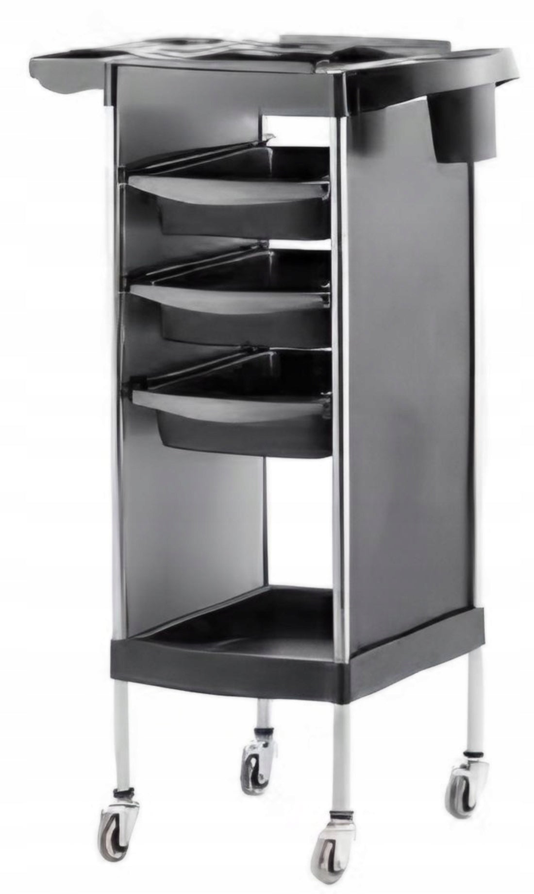 Atraskite nepakeičiamą pagalbininką, sukurtą profesionalams – mūsų mobilų vežimėlį, idealiai tinkantį kirpykloms, kosmetologijos kabinetams ir SPA salonams. Šis vežimėlis yra esminis įrankis, užtikrinantis efektyvesnį ir greitesnį darbą, leidžiantis visus reikalingiausius aksesuarus ir priemones laikyti pasiekiamu atstumu. Tai puikus sprendimas vertinantiems tvarką ir organizaciją savo darbo erdvėje, ypač atliekant dažymo ar kitas sudėtingas procedūras.