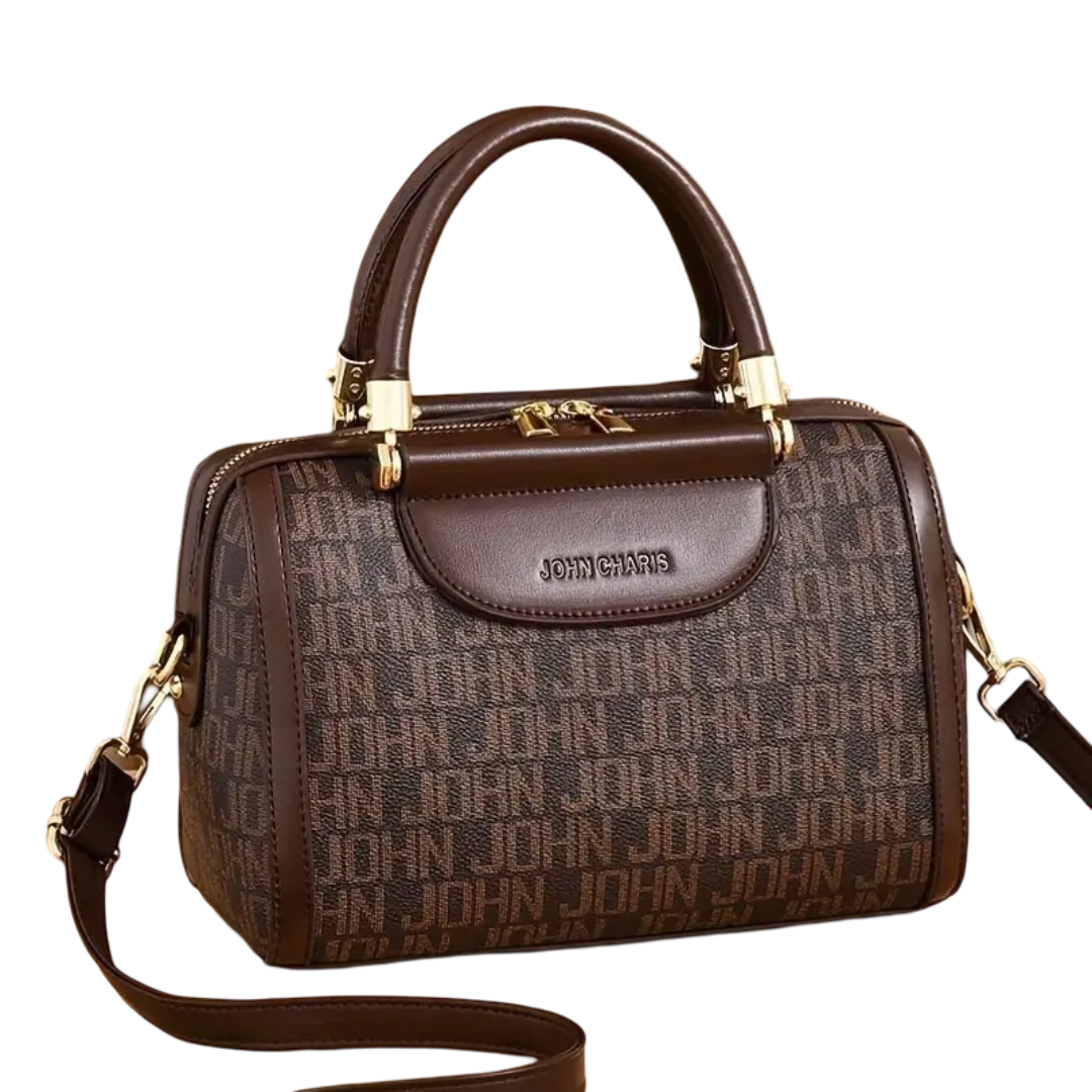 Moteriška Bostono stiliaus rankinė – tai elegancijos ir funkcionalumo derinys, skirtas šiuolaikiškai moteriai, kuri vertina stilių ir praktiškumą. Ši talpi rankinė iš kokybiškos PU dirbtinės odos pasižymi moderniu dizainu, atsitiktinio spausdinimo raštu ir subtiliais auksiniais akcentais. Viduje esantis poliesterio pamušalas užtikrina ilgaamžiškumą bei tvarką, o užtrauktuku užsegamas pagrindinis skyrius patikimai saugo jūsų daiktus. Nuimamas reguliuojamas dirželis leidžia rankinę nešioti tiek rankoje, tiek ant peties, todėl ji tinka tiek darbui, tiek kasdieniam naudojimui ar ypatingoms progoms. Talpi konstrukcija suteikia galimybę patogiai sutalpinti viską, ko reikia kasdien – nuo telefono, kosmetikos, piniginės iki smulkių aksesuarų. Tai universalus ir madingas pasirinkimas moterims, norinčioms išsiskirti savo stiliumi.