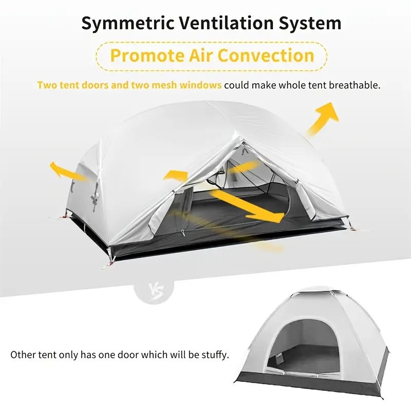 Ši Naturehike Mongar 2 palapinė – puikus pasirinkimas norintiems patikimos, lengvos ir patogios apsaugos nuo gamtos iššūkių, neprarandant komforto ir funkcionalumo.