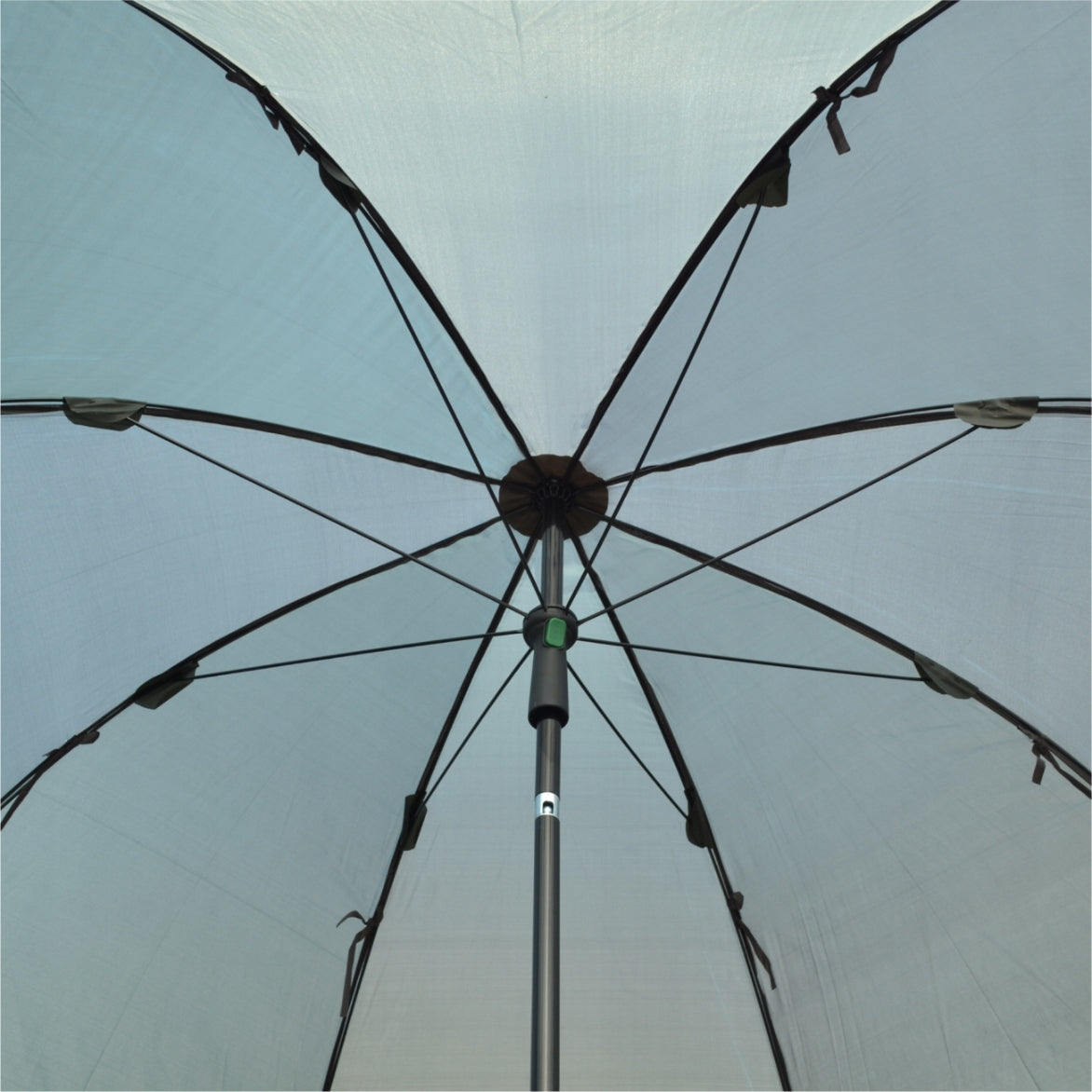 - Dydis: Nors skėtis yra erdvus (220 cm skersmens), jis gali būti nepakankamas, jei žvejojate su keliais žmonėmis arba turite daug didelės įrangos.