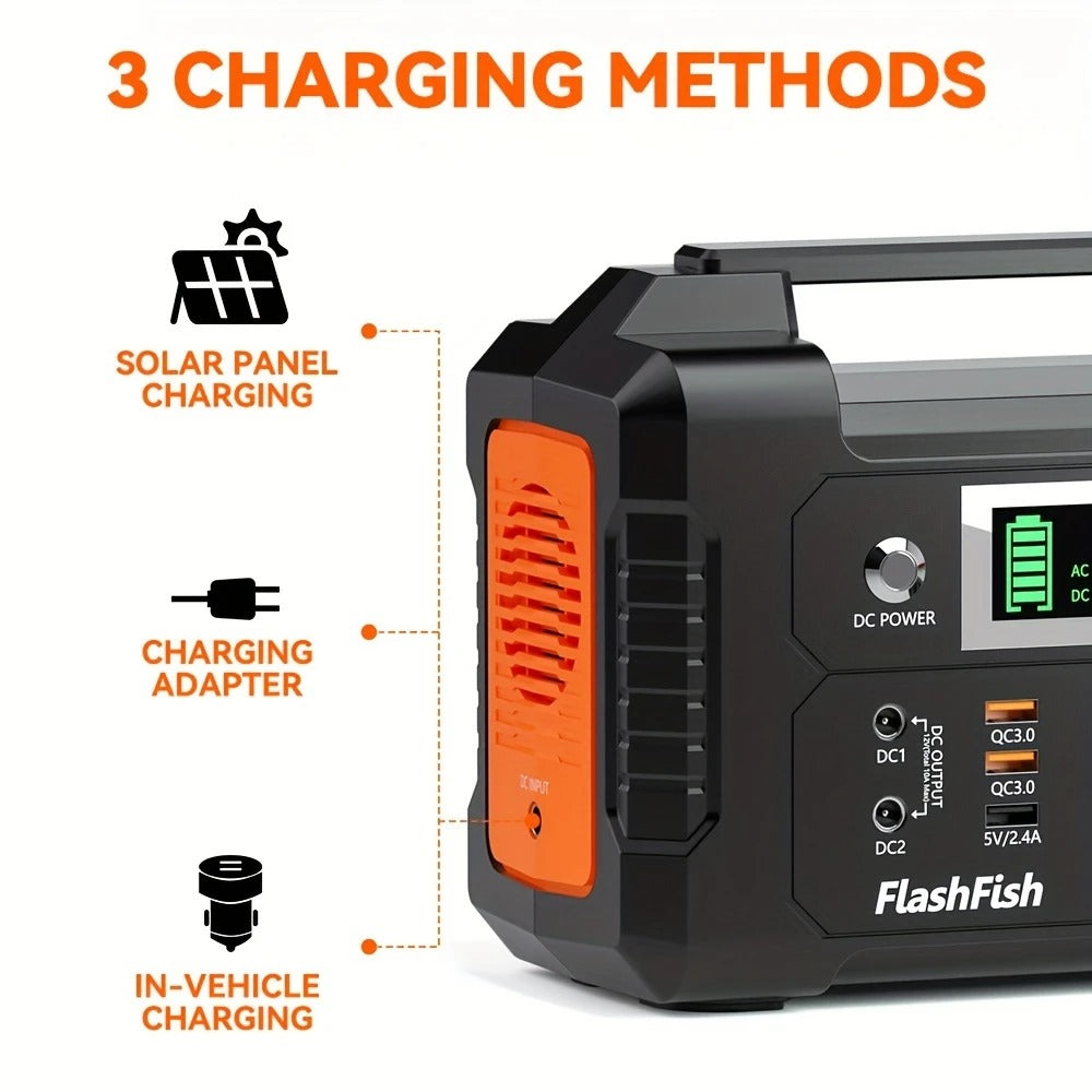 Nešiojama energijos stotelė Flashfish E200 – 200 W, 151 Wh (40800 mAh), su AC, DC ir USB, saulės įkrovimo galimybė