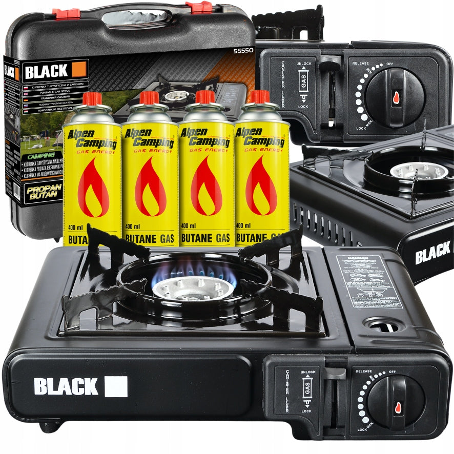 Nešiojama turistinė dujinė viryklė lagamine Box + 4 dujų balionėliai