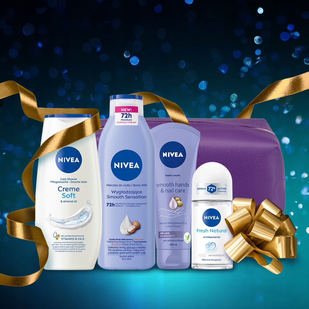 Dovanų rinkinį sudaro kruopščiai atrinktos NIVEA produkcijos, užtikrinančios išskirtinę odos priežiūrą: