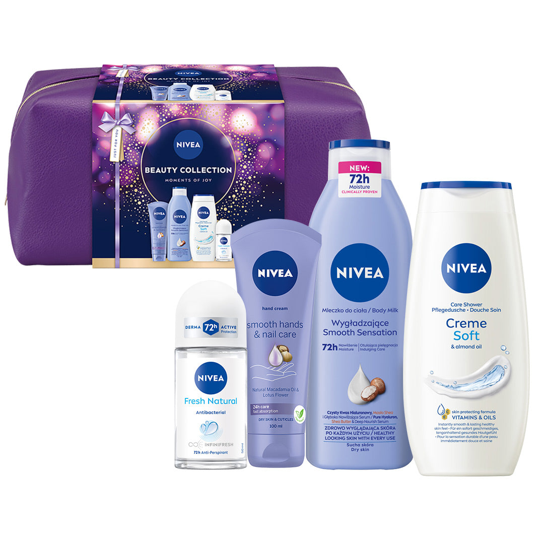 NIVEA BEAUTY rinkinys siūlo subalansuotą priežiūrą kiekvienai dienai, pradedant nuo gaivinančio prausimosi ir baigiant ilgalaike apsauga bei intensyviu odos drėkinimu. Kiekvienas produktas sukurtas su NIVEA patikimumu ir patirtimi, atsižvelgiant į odos poreikius. Švelnios formulės, praturtintos vertingais ingredientais, pasirūpins jūsų oda, suteikdamos jai aksominį glotnumą ir sveiką išvaizdą. Tai puikus būdas pradėti dieną su gaivumo jausmu ir užbaigti ją spindinčia, pamaitinta oda. Dermatologų patvirtinta tolerancija odai užtikrina, kad šios priemonės tinka net jautriai odai, rūpindamosi jos gerove.